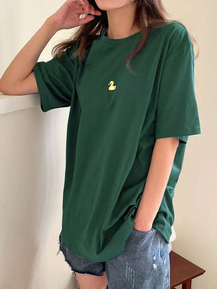 T-shirt ample d'été avec broderie de canard, épaules tombantes