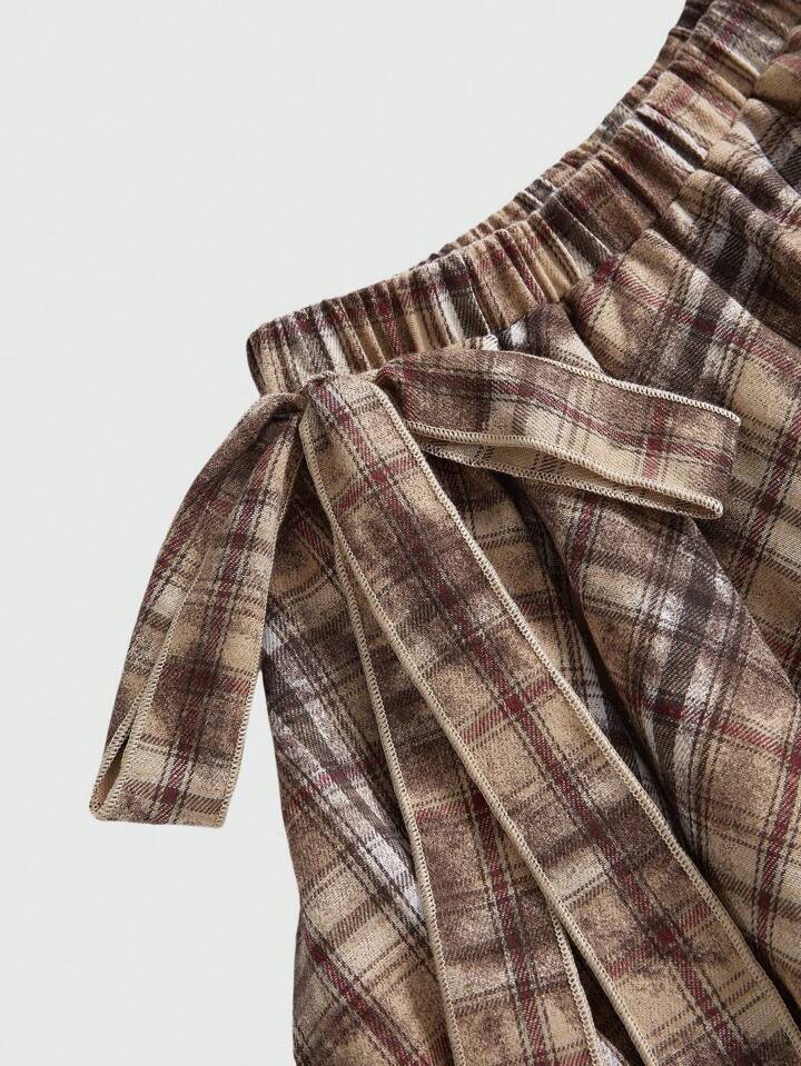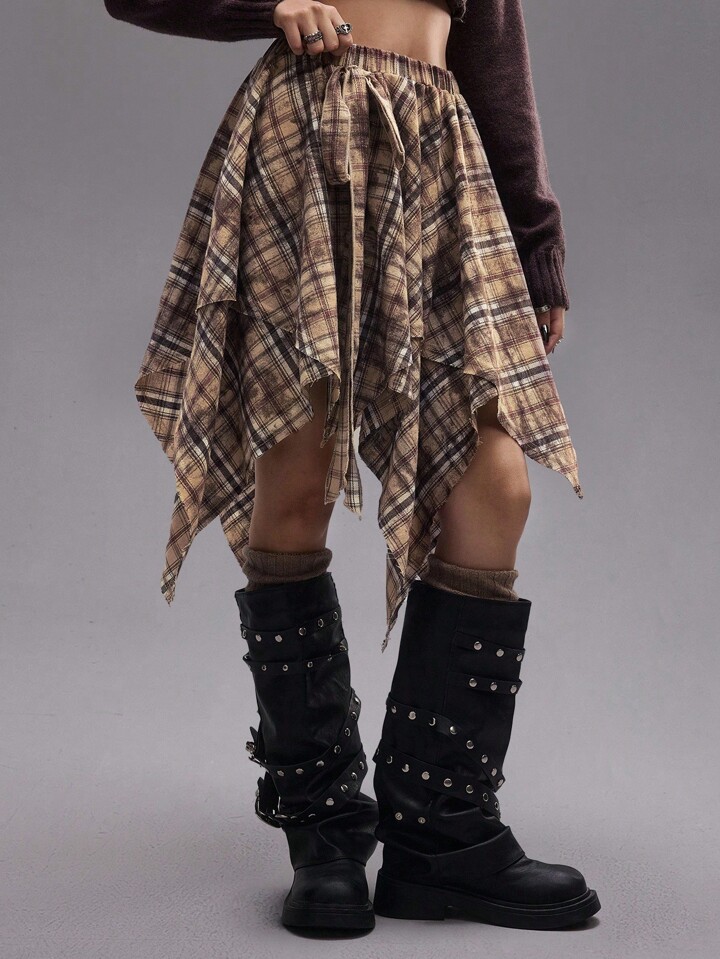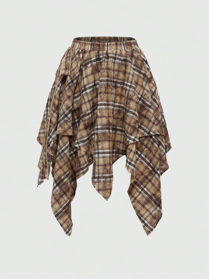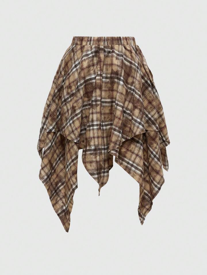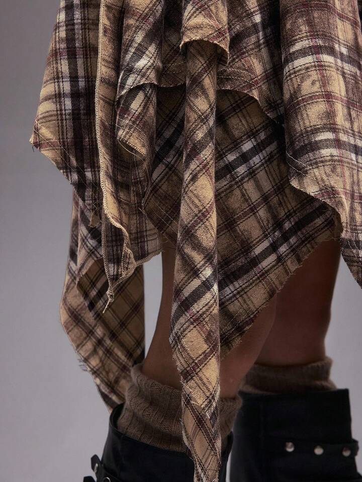 EDITION Jupe plissée asymétrique tie-dye à carreaux pour femmes, style rétro grunge pour la rentrée scolaire. Convient pour être portée avec un pantalon.