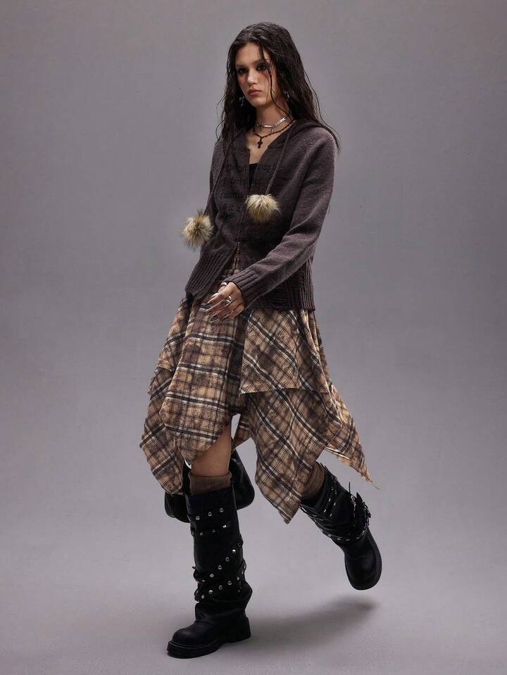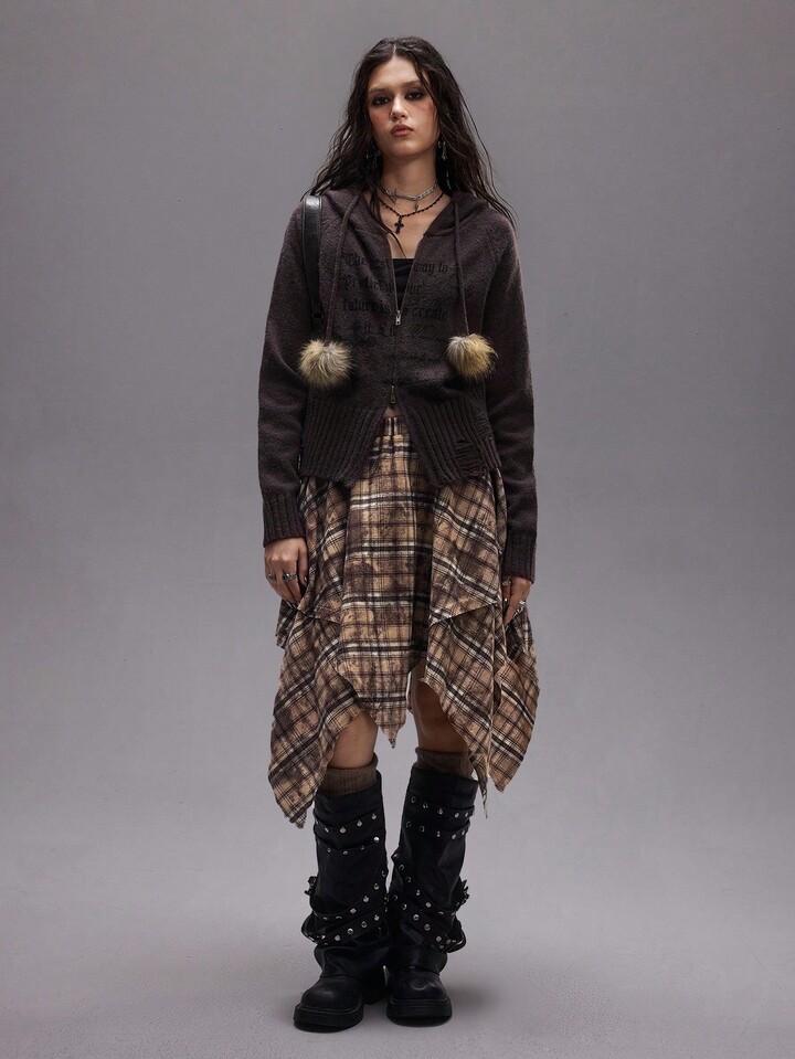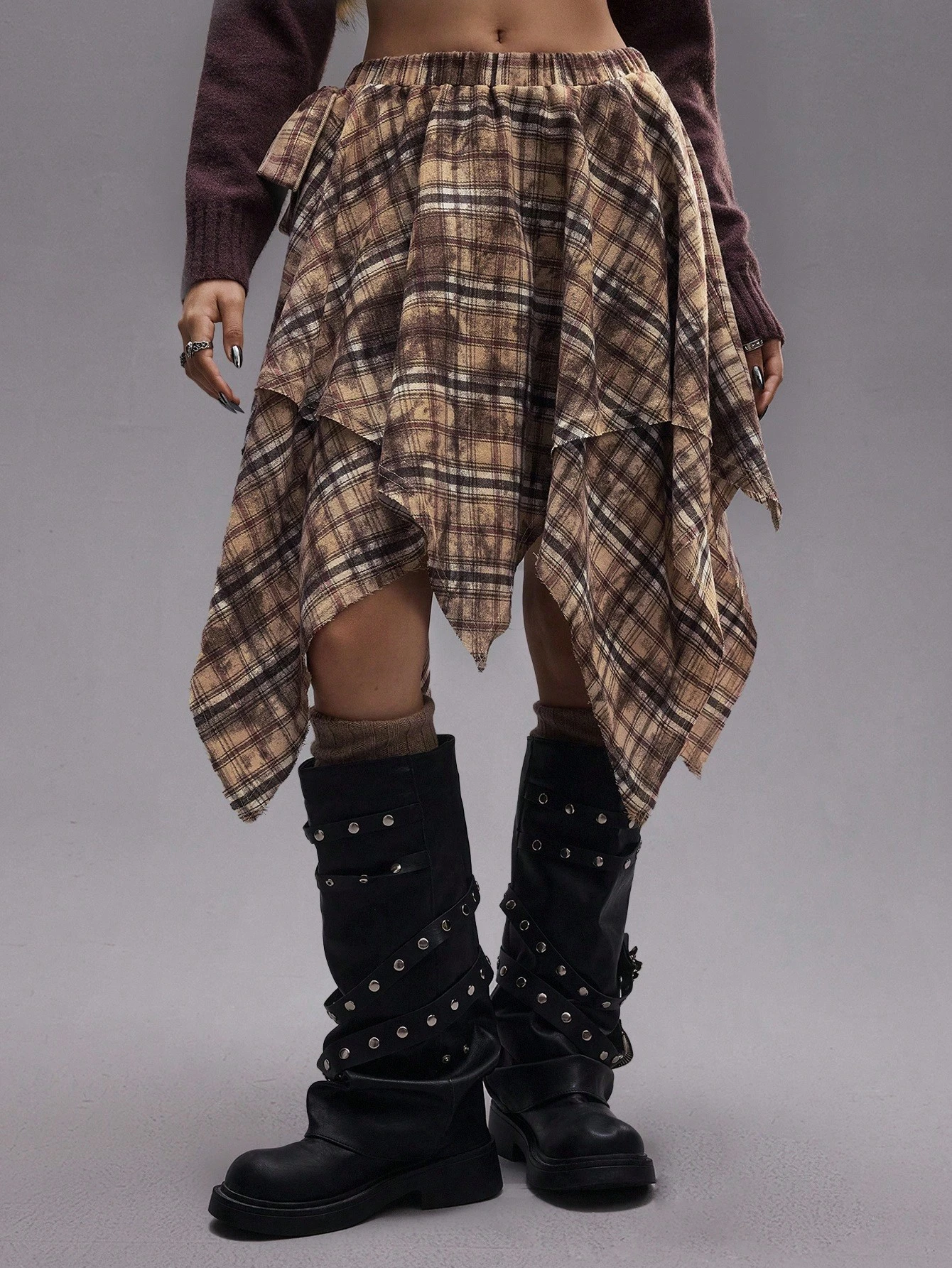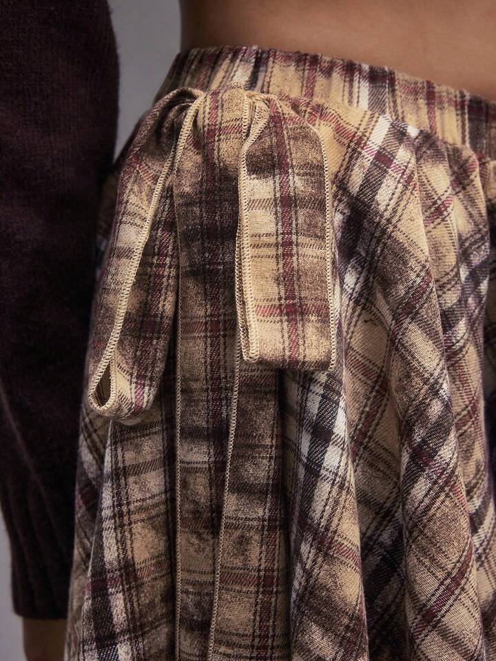EDITION Jupe plissée asymétrique tie-dye à carreaux pour femmes, style rétro grunge pour la rentrée scolaire. Convient pour être portée avec un pantalon.