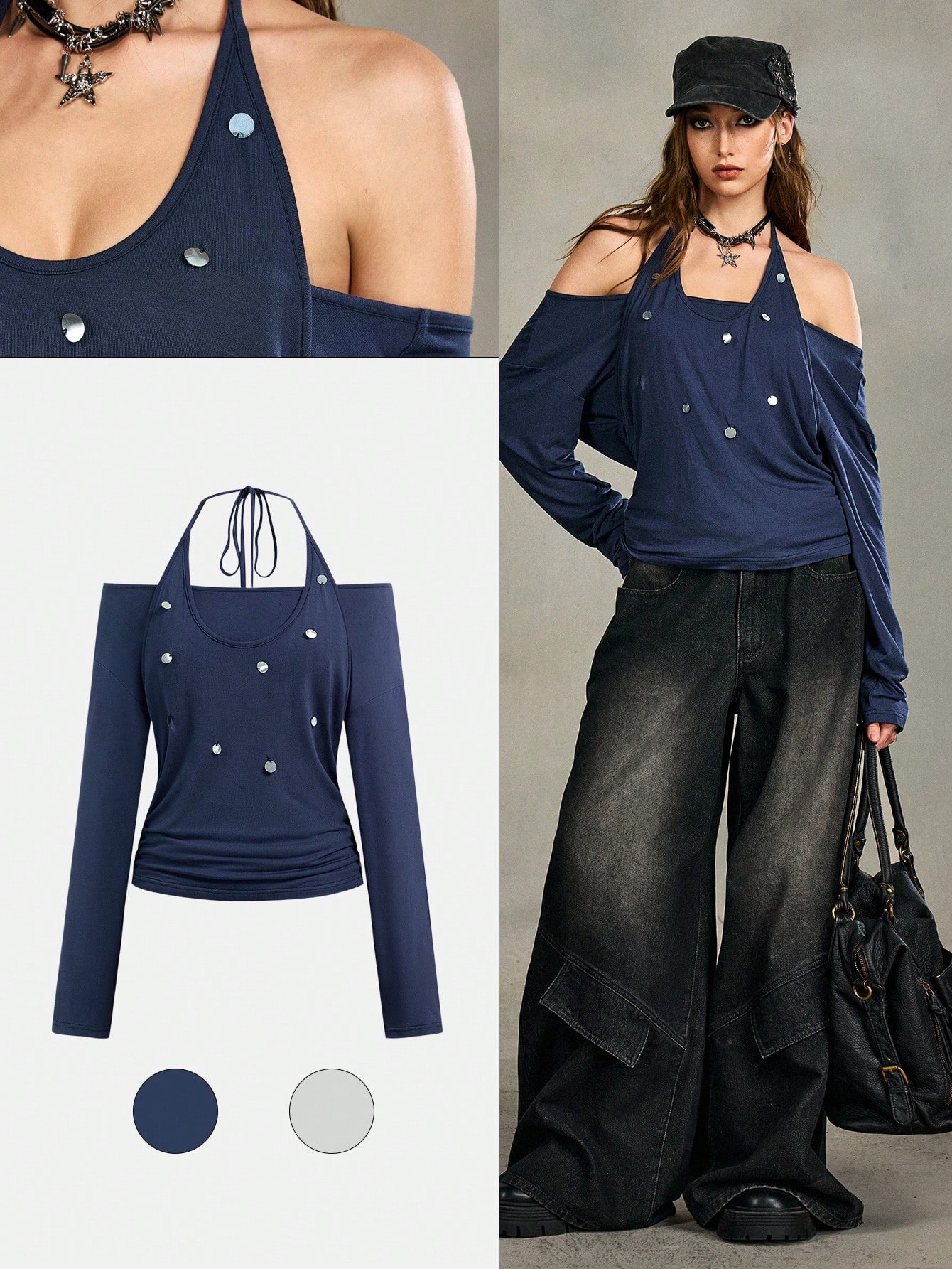 EDITION Top sans manches à encolure plongeante et épaules dénudées, avec décoration rétro chic de sequins, 2 en 1