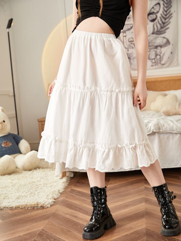 Jupe à broderie anglaise à plis