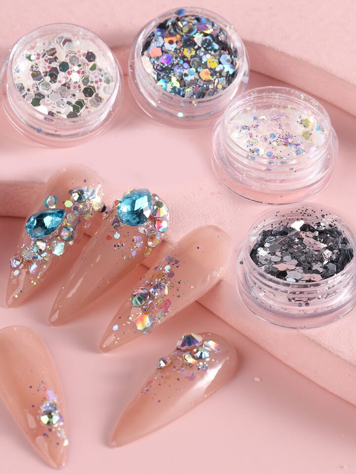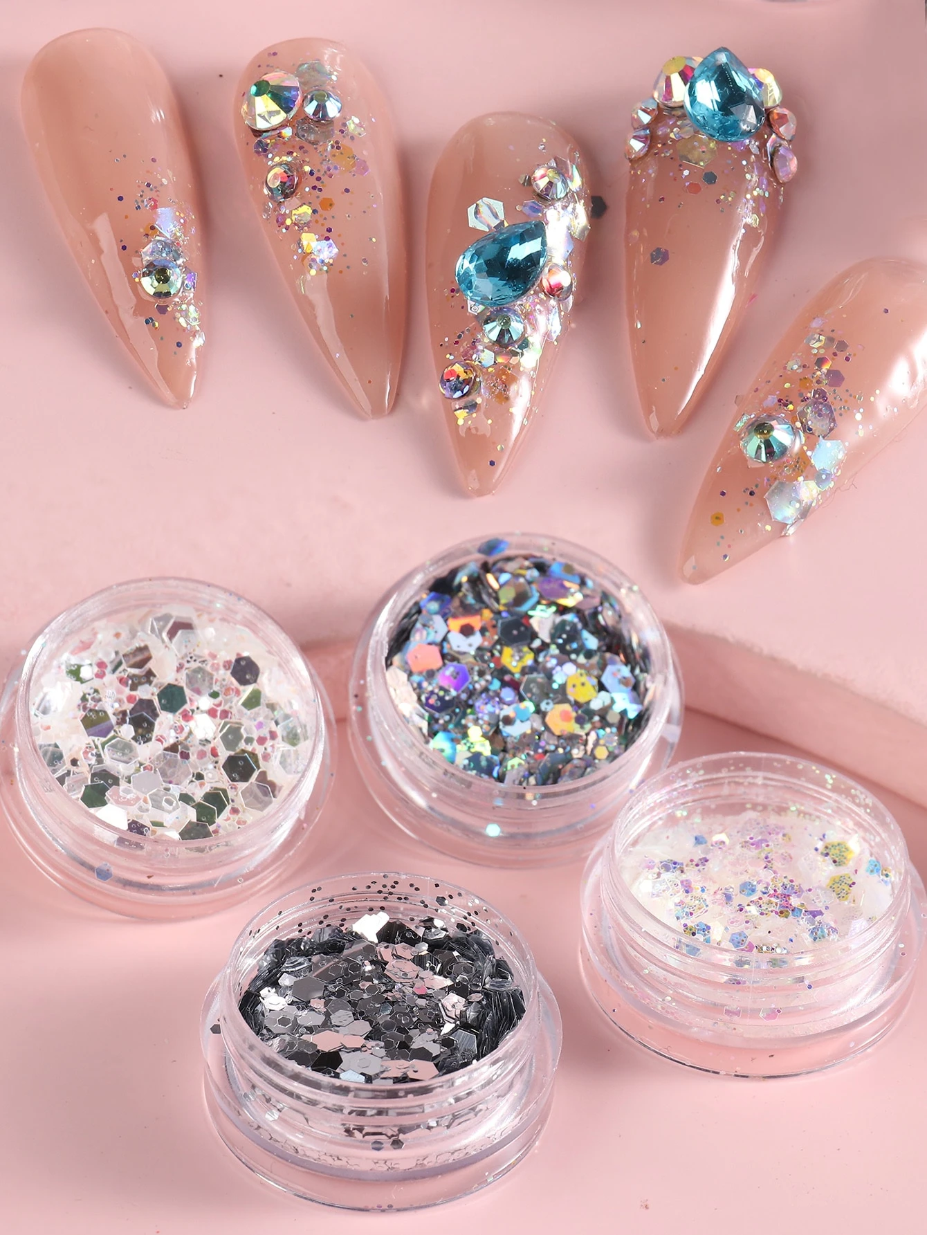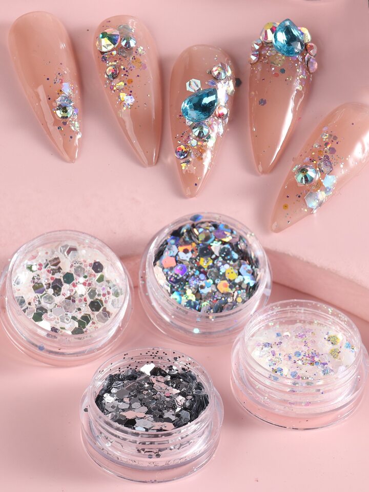 FULL BEAUTY 4 boîtes Nail Art en forme géométrique scintillant à paillettes