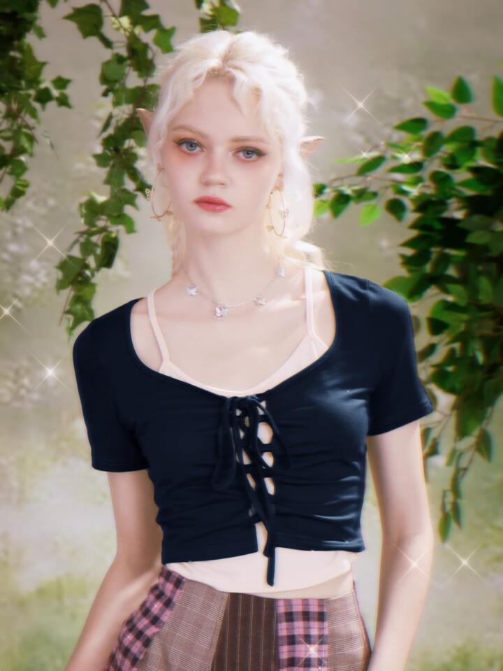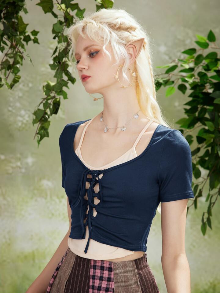 Fairycore T-shirt 2 en 1 à lacets