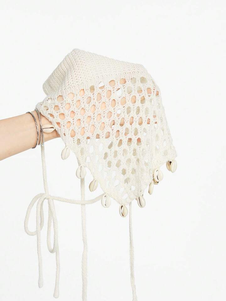 Fairycore Top tricoté au décolleté ras-du-cou et ourlet asymétrique, avec décor coquillage, style vacances