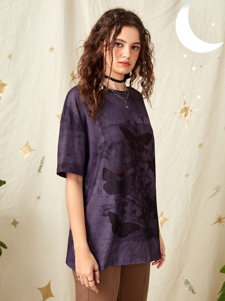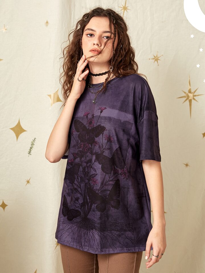 Fairycore T-shirt ample avec graphique de papillon, unisexe