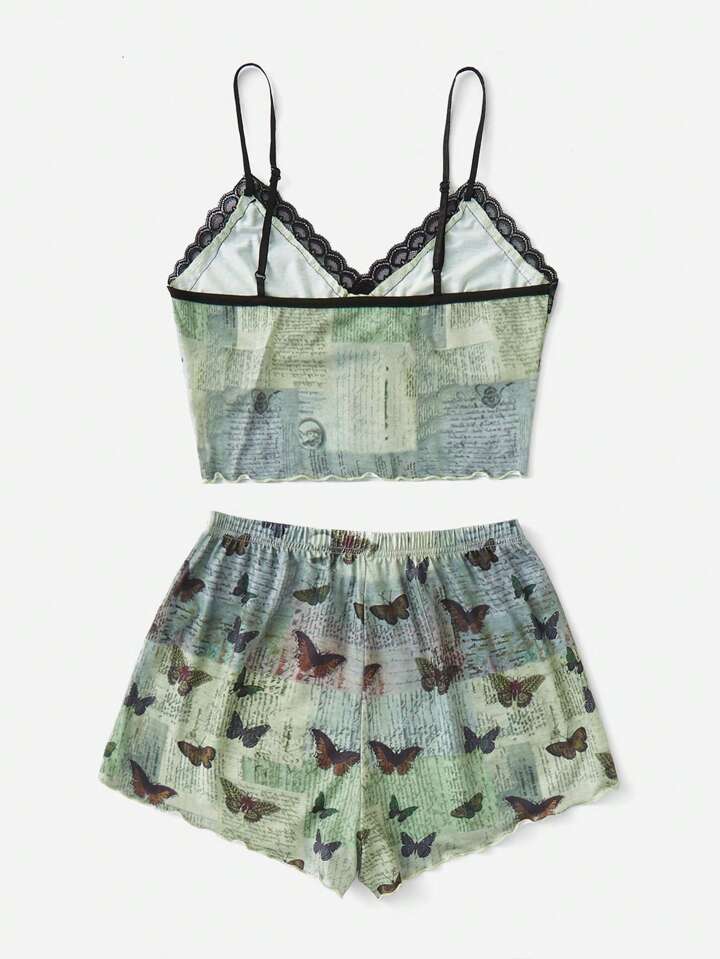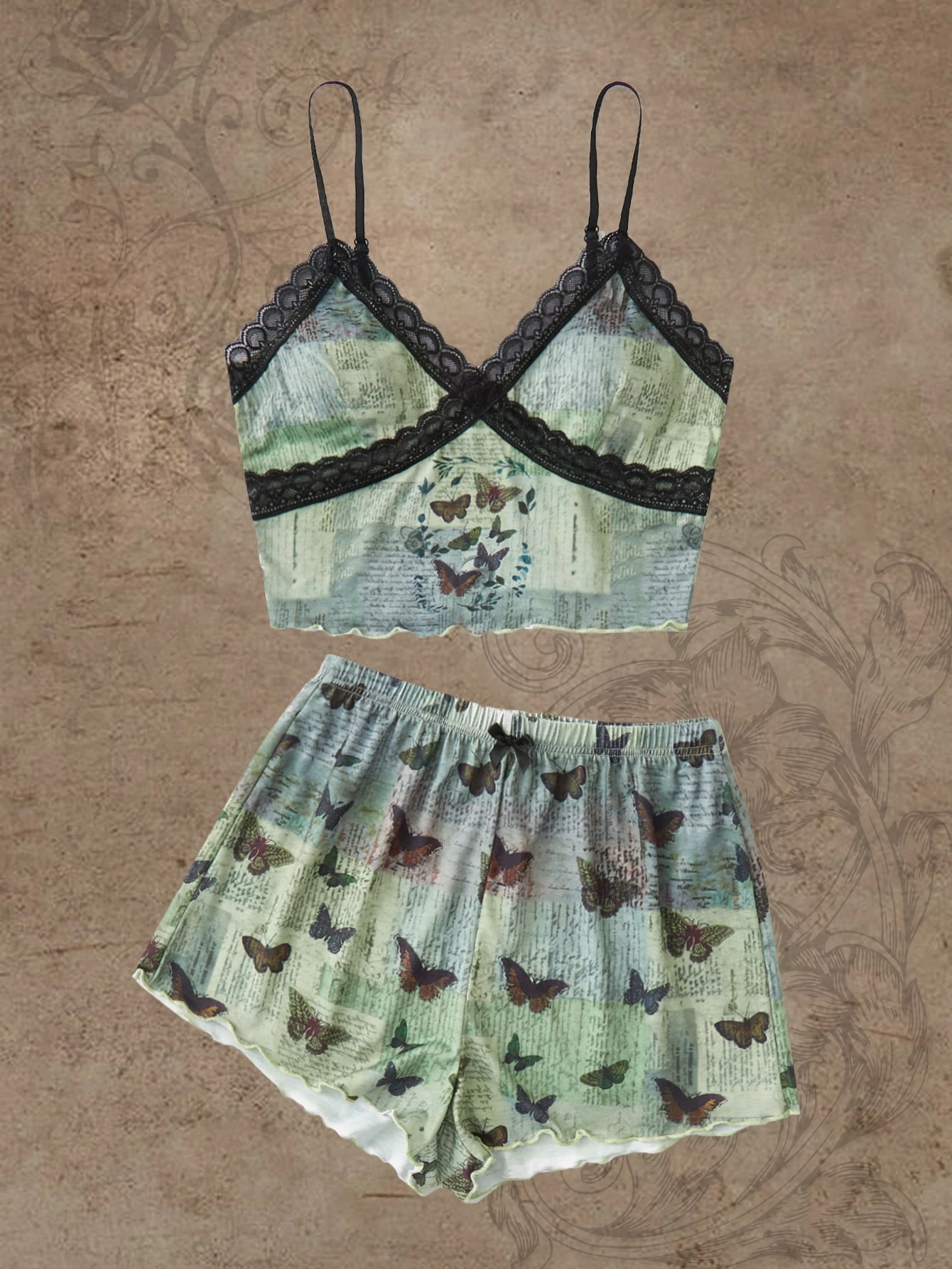Fairycore Ensemble de pyjama à imprimé papillon en dentelle
