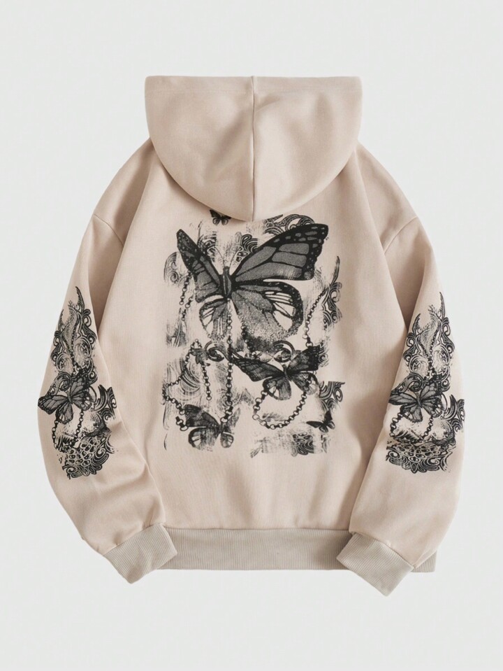 Fairycore Sweat-shirt à capuche à imprimé papillon à cordon à doublure thermique