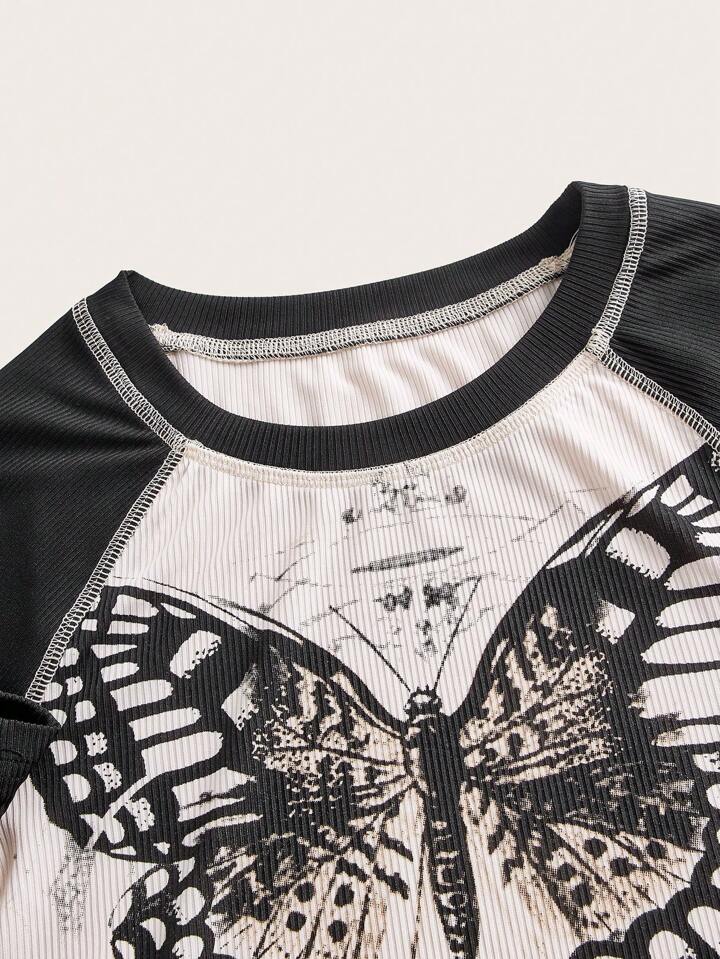 Fairycore T-shirt Imprimé Papillon Manches Raglan