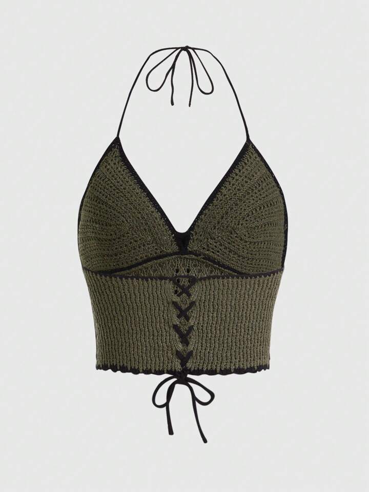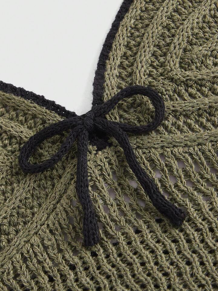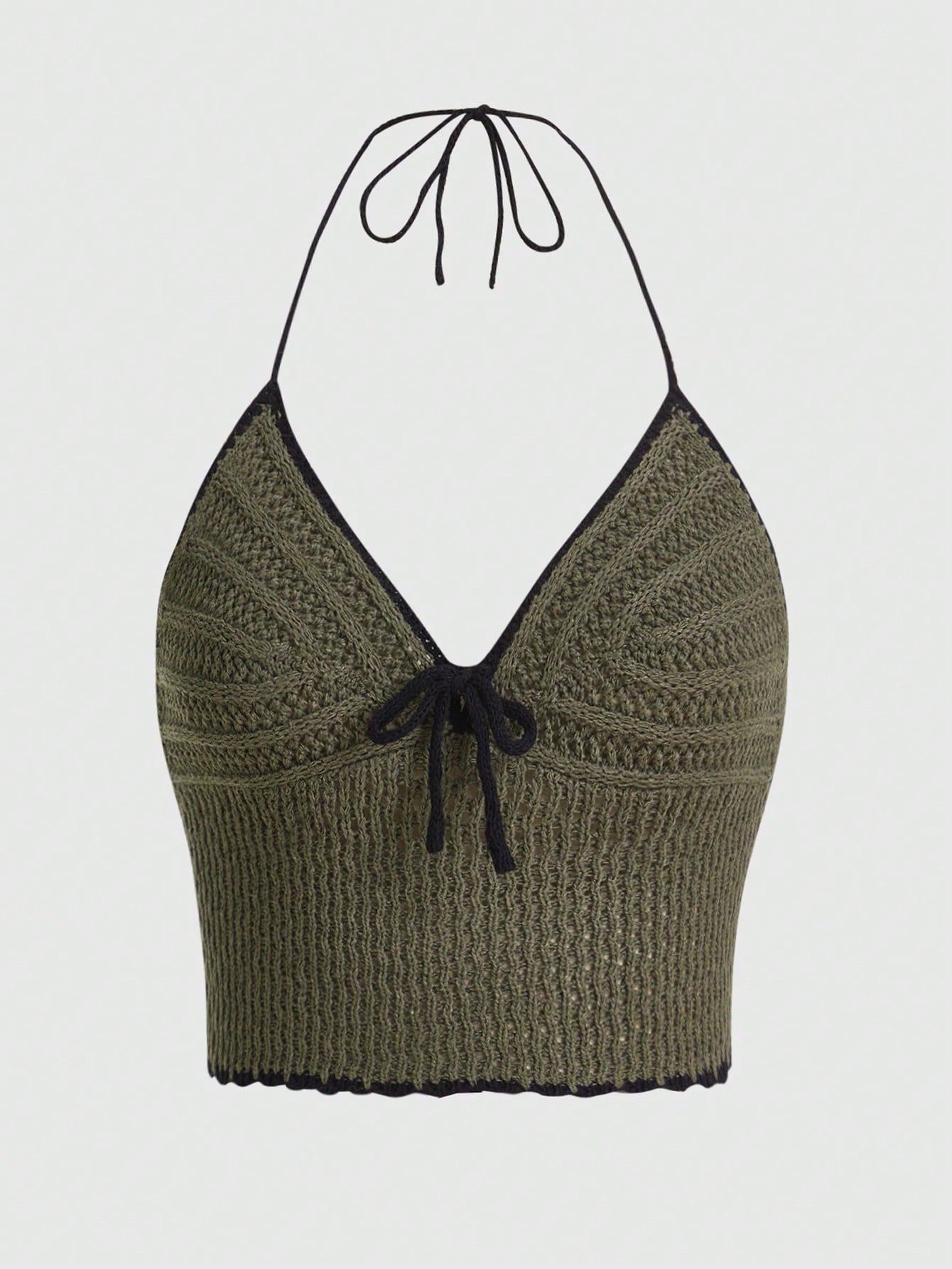 Fairycore Top En Tricot À Liseré Contrastant Dos-Nu À Nœud Ras-Du-Cou