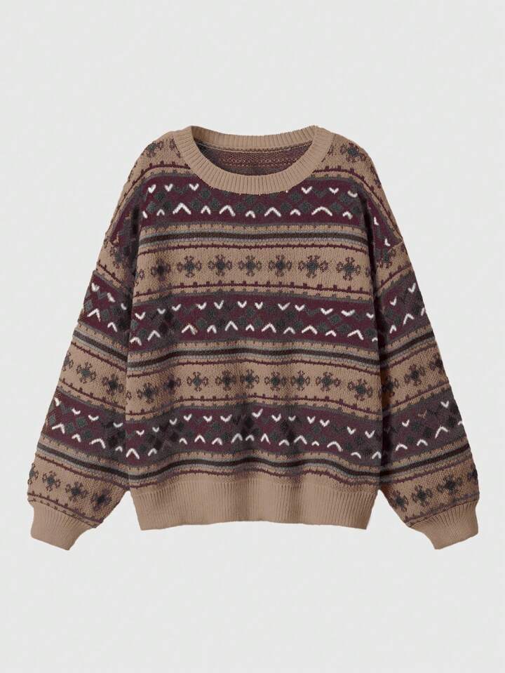 Fairycore Pull over à col ras-du-cou, manches longues, avec détails de motif, style décontracté minimaliste