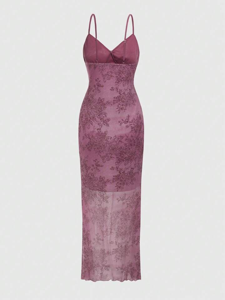 Fairycore Robe à queue de poisson de style Cheongsam en maille de fleurs avec bretelles spaghetti en maille