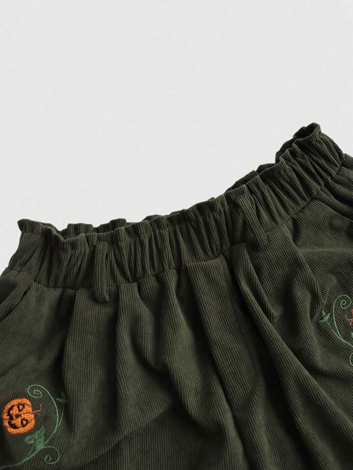 Fairycore Short Halloween Citrouille À Broderie À Taille Froncée