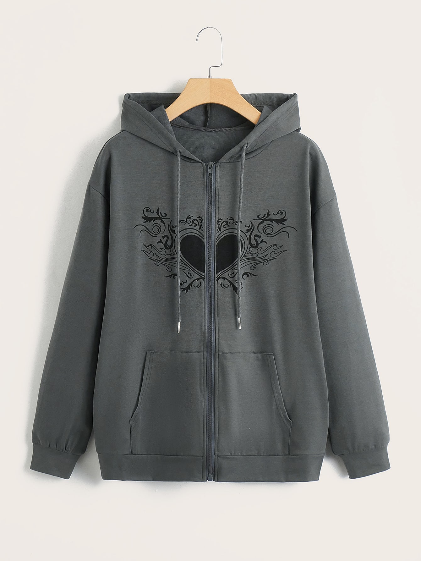 Fairycore Sweat-shirt à capuche cœur zippé à poche kangourou à cordon