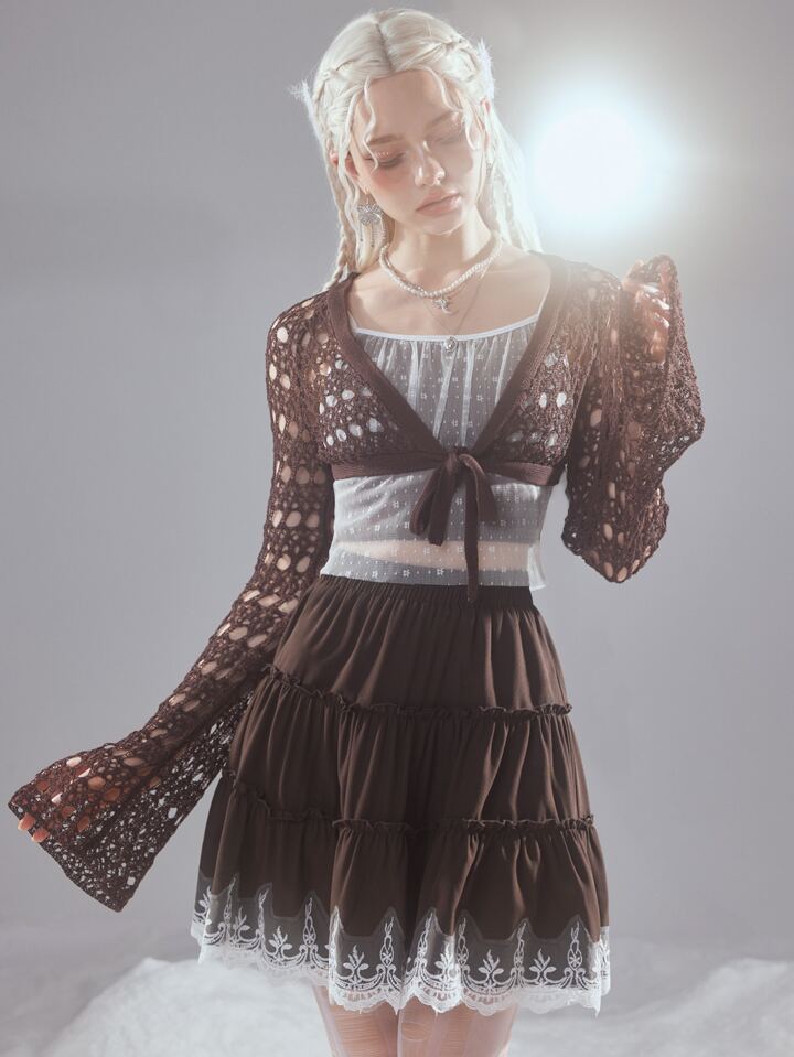 Fairycore Cardigan court ajouré à nœud