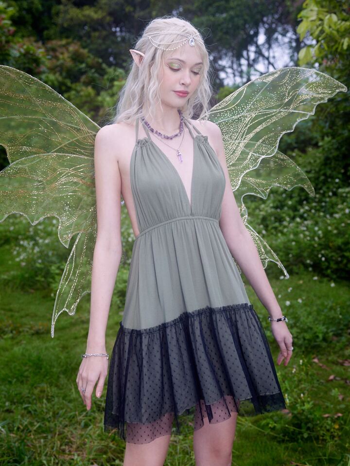 Fairycore Robe ras-du-cou à maille dos-nu
