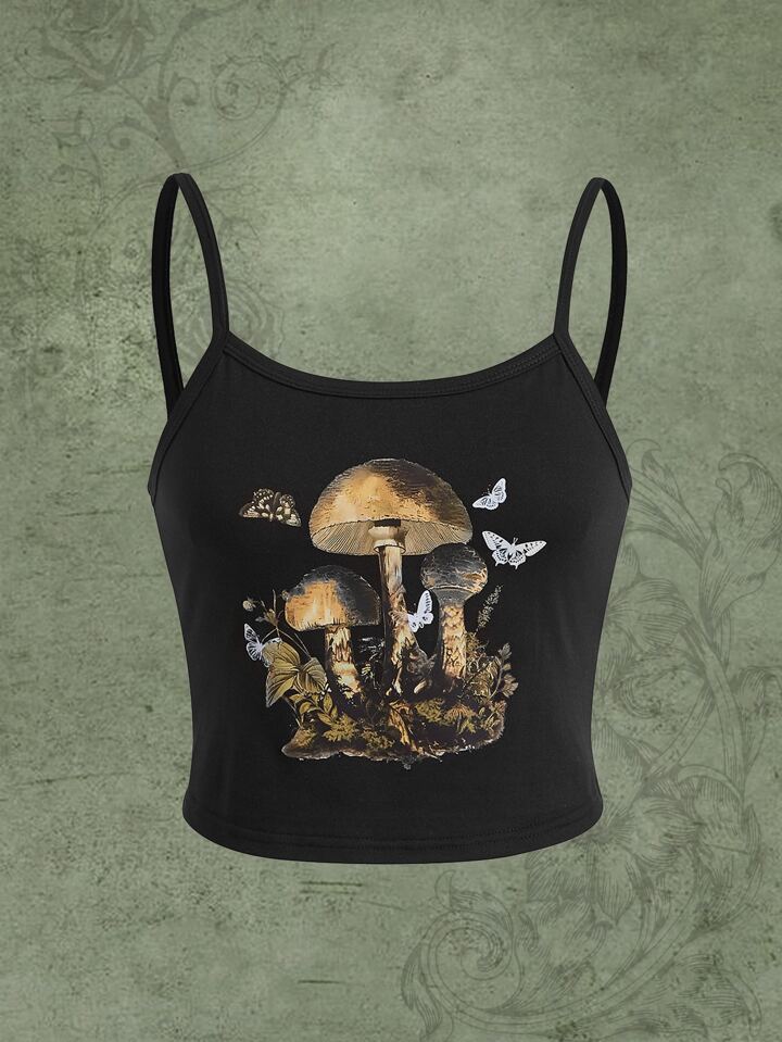 Fairycore Top À Fines Brides Imprimé Champignon