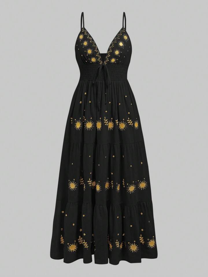 Fairycore Robe cami près du corps style vacances à la plage rétro avec broderie étoiles et lune, coupe évasée pour grandes tailles, pour l'été