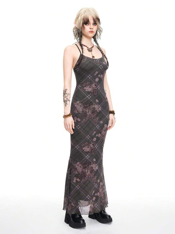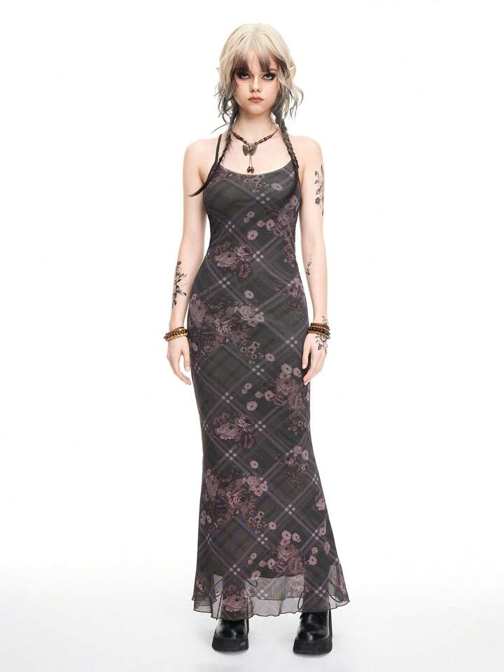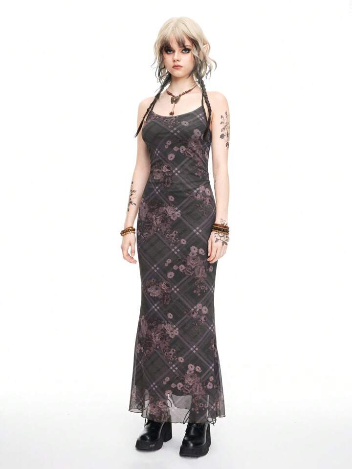 Fairycore Robe pour femmes imprimée en plaid de roses