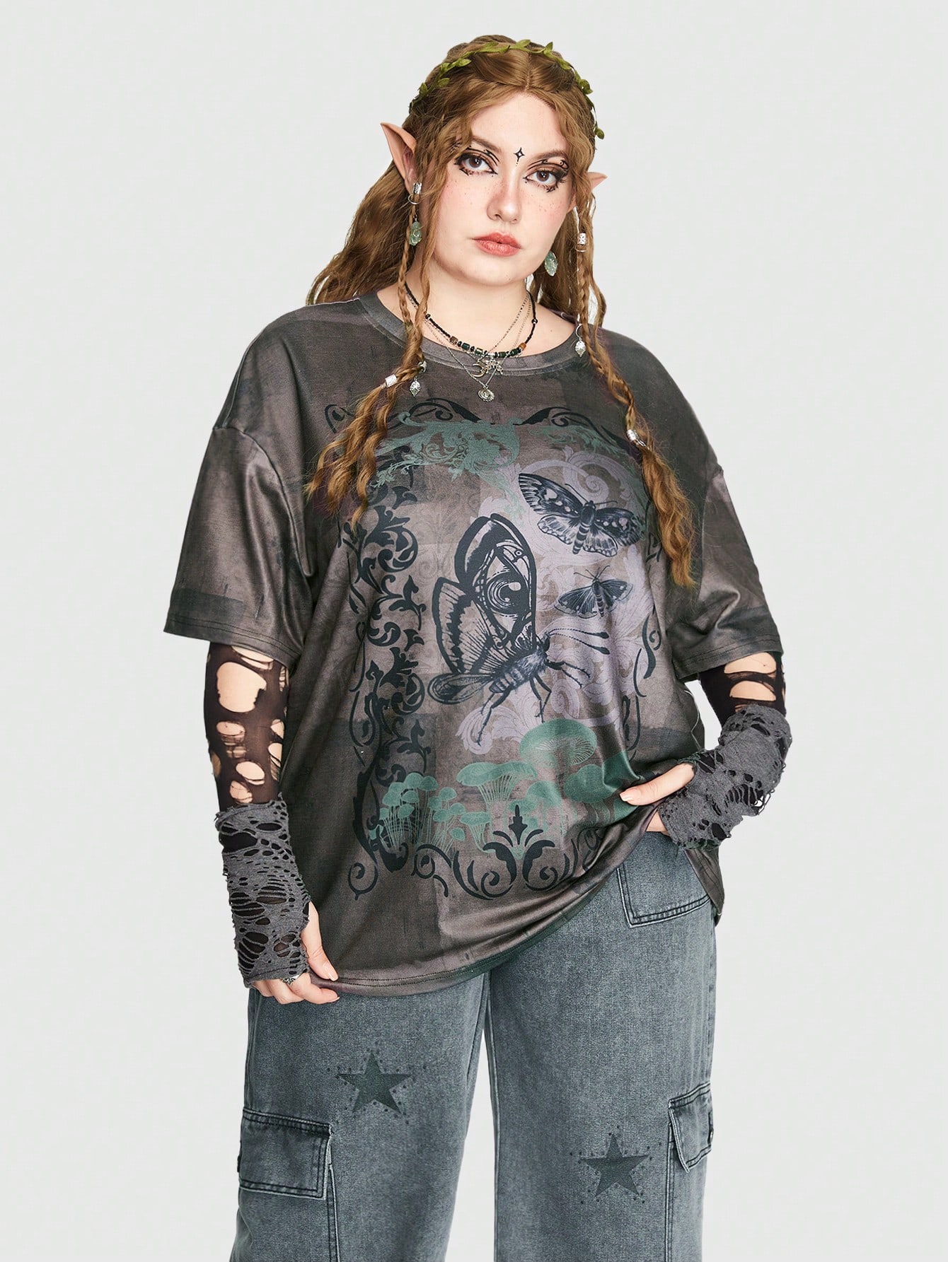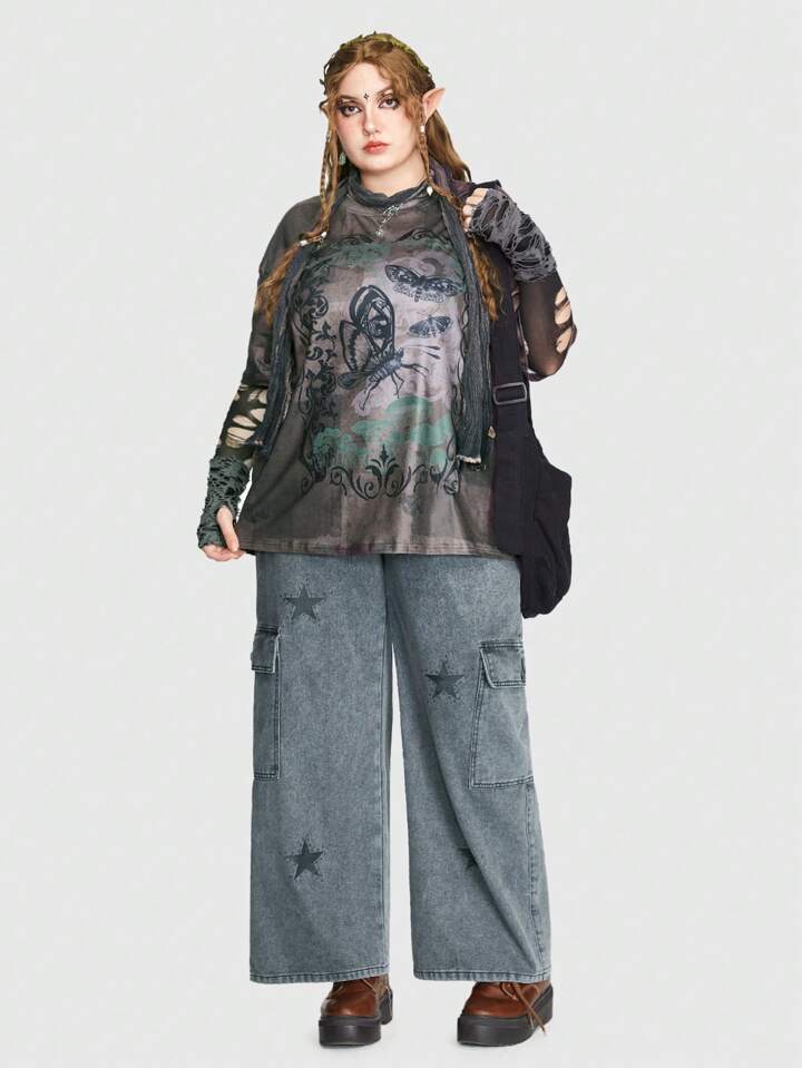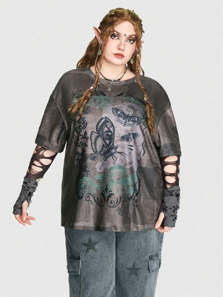 Fairycore Plus T-shirt Imprimé Papillon Déchiré