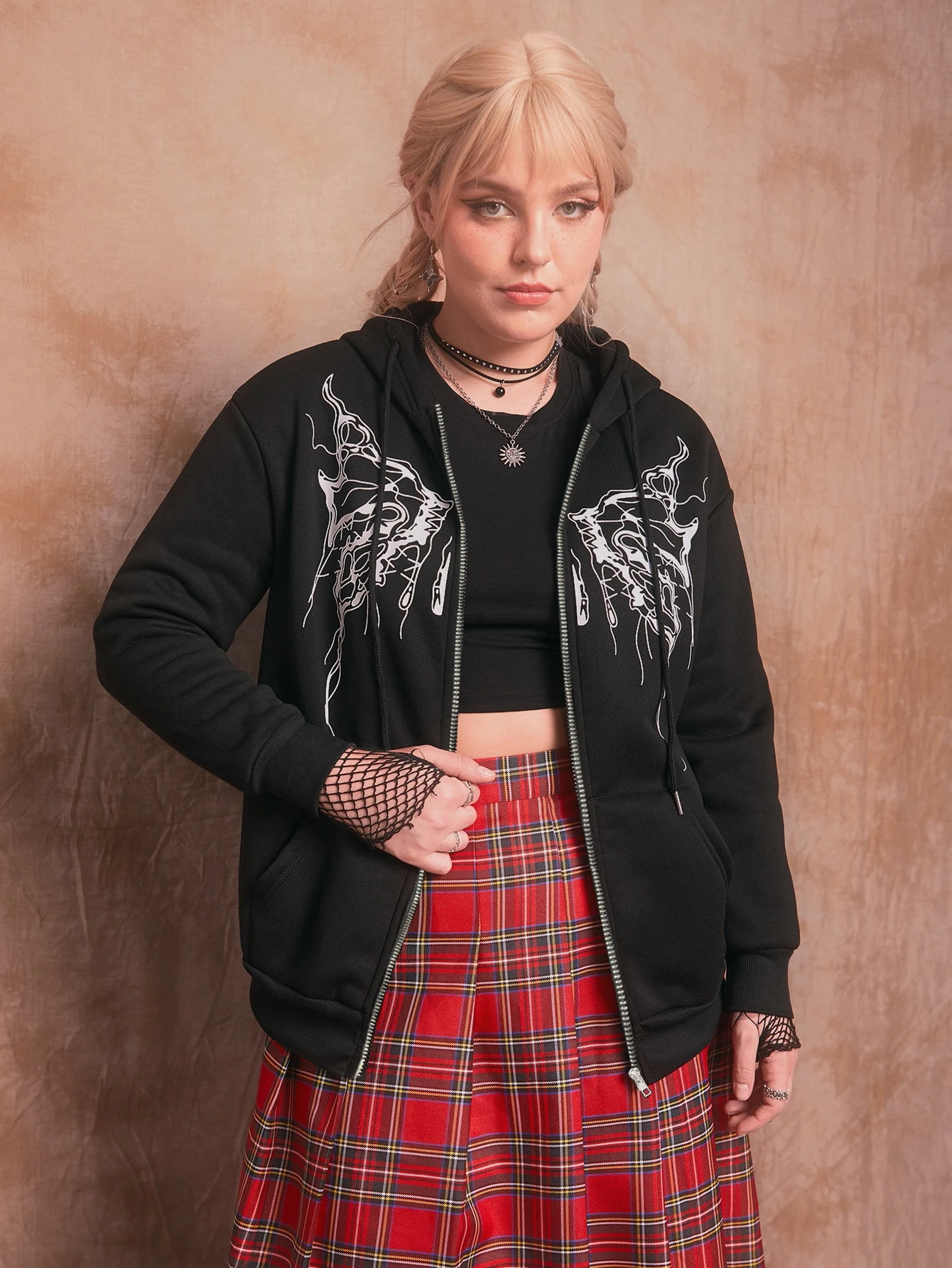 Fairycore Sweat-shirt à capuche à imprimé papillon zippé à cordon