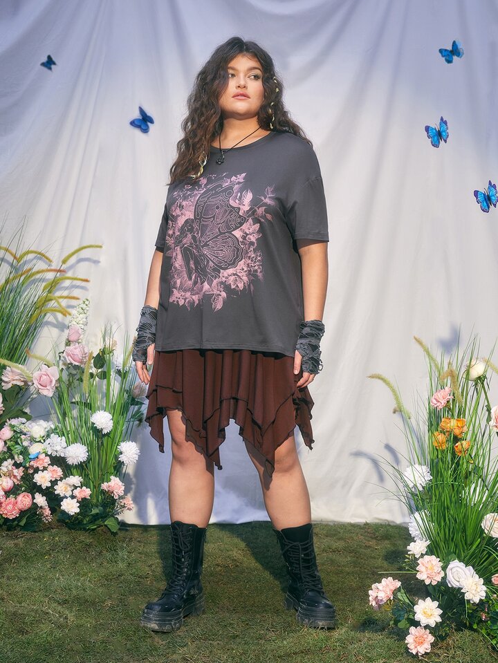 Fairycore Plus T-shirt figure & Imprimé Aile