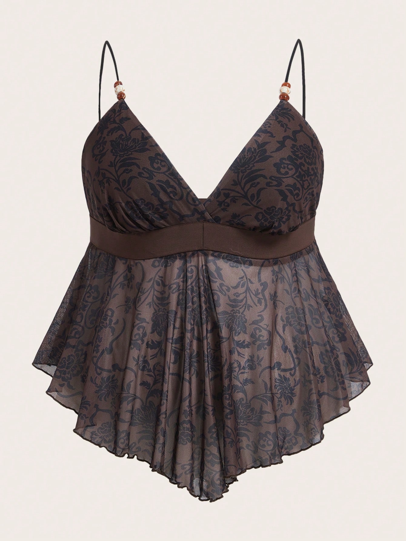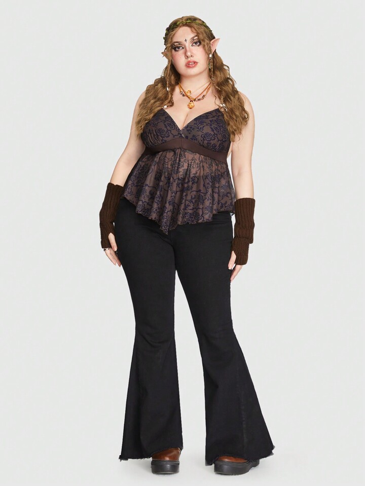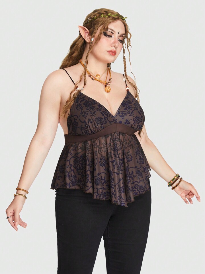 Fairycore Plus Top À Fines Brides En Dentelle Asymétrique