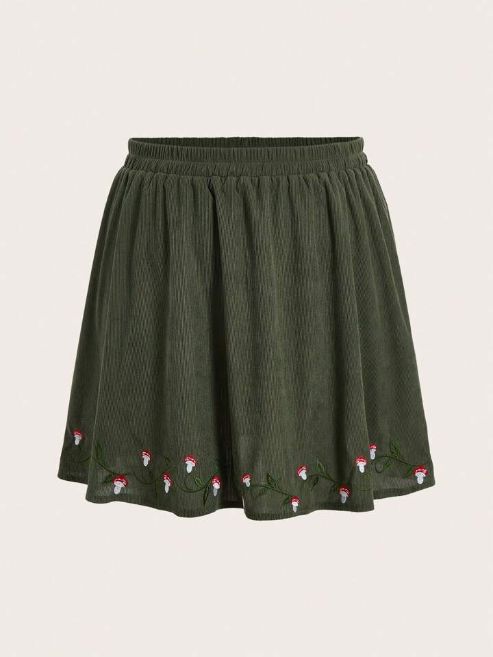Fairycore Plus Jupe À Broderie Champignon