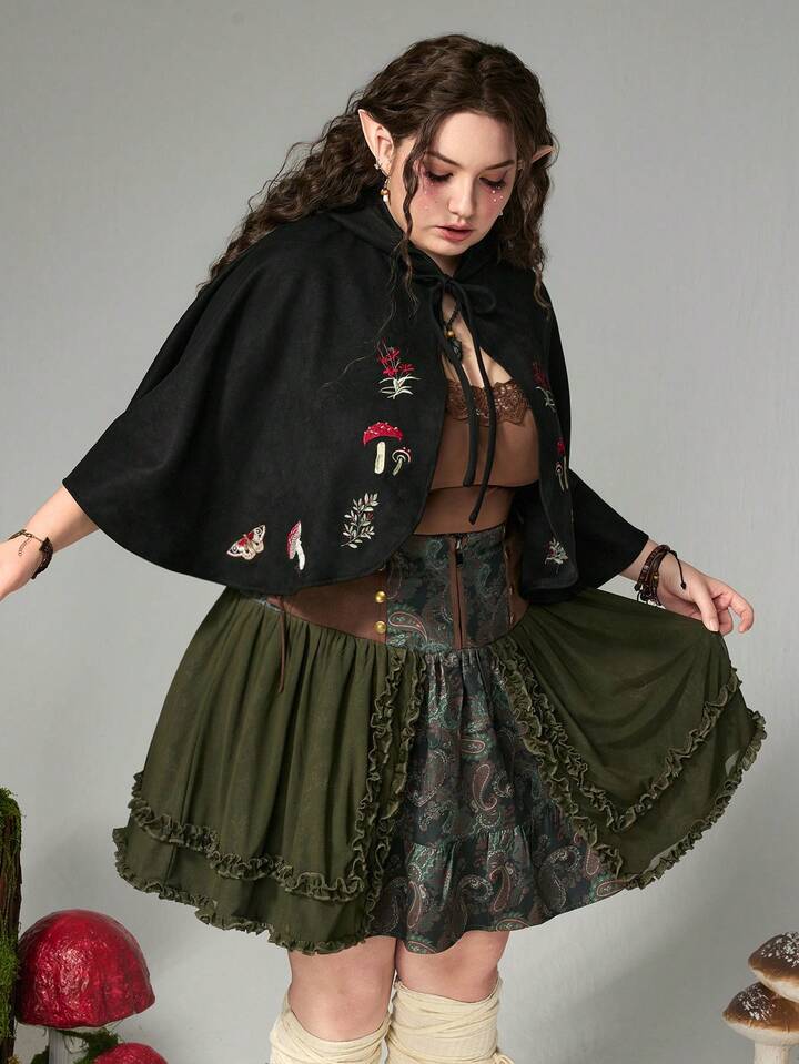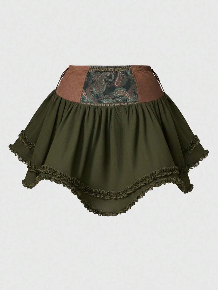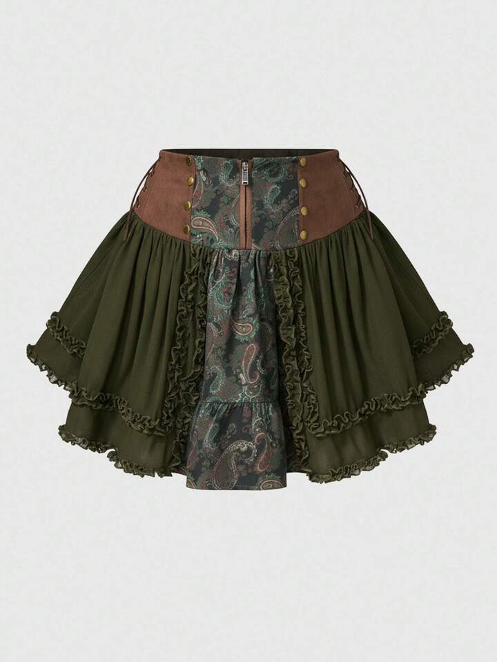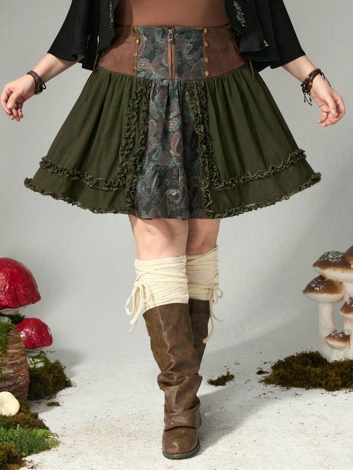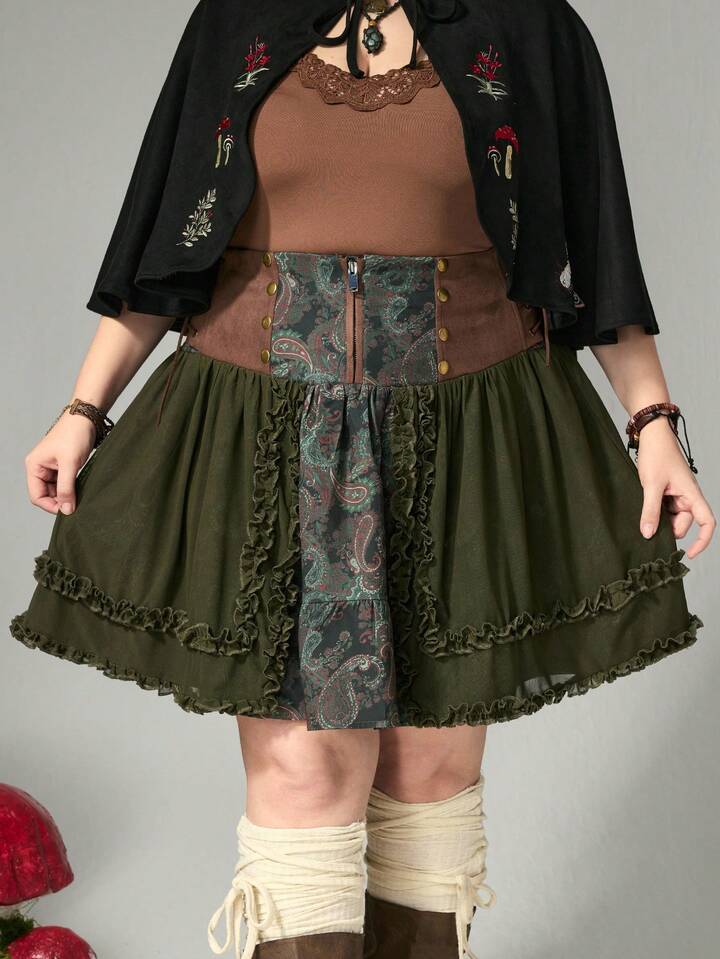 Fairycore Jupe mi-longue rétro en tissu grande taille