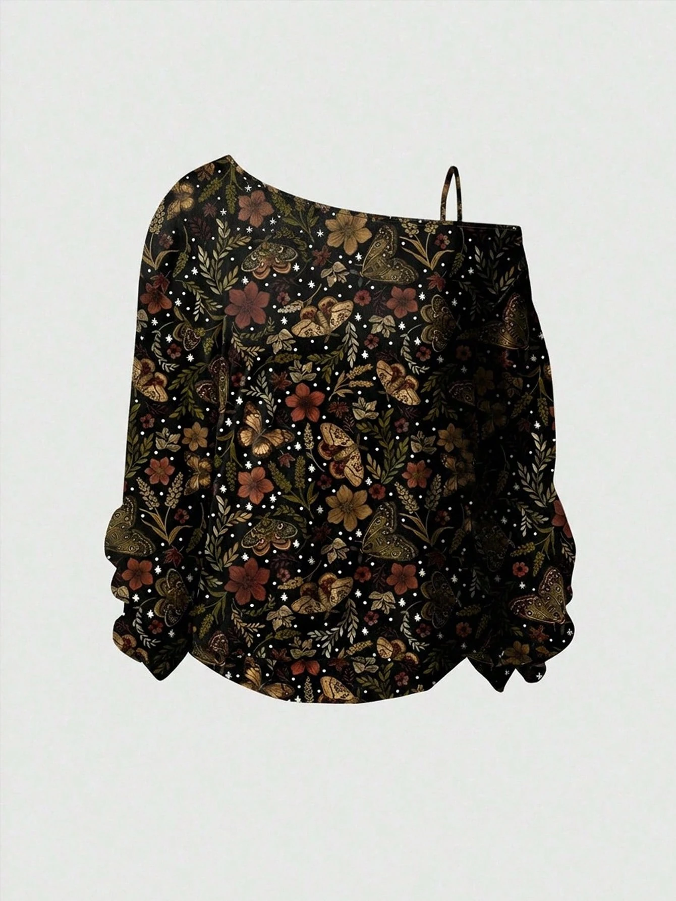 Fairycore Sweat-shirt-shirt asymétrique à bretelles sexy, style hippie floral et botanique, pour grandes tailles, automne/hiver