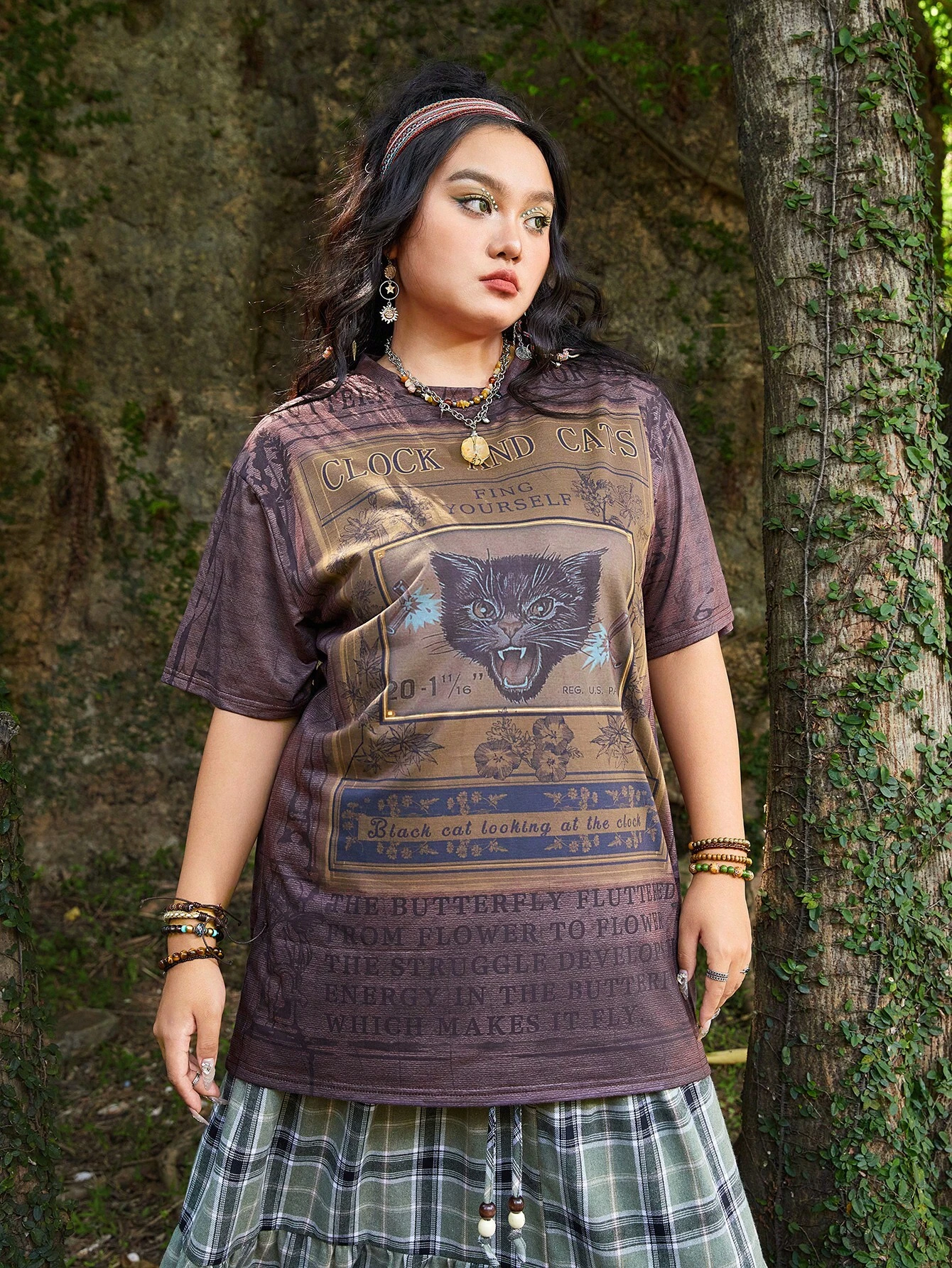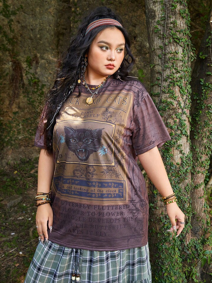 Fairycore Plus T-shirt slogan & Imprimé Animal