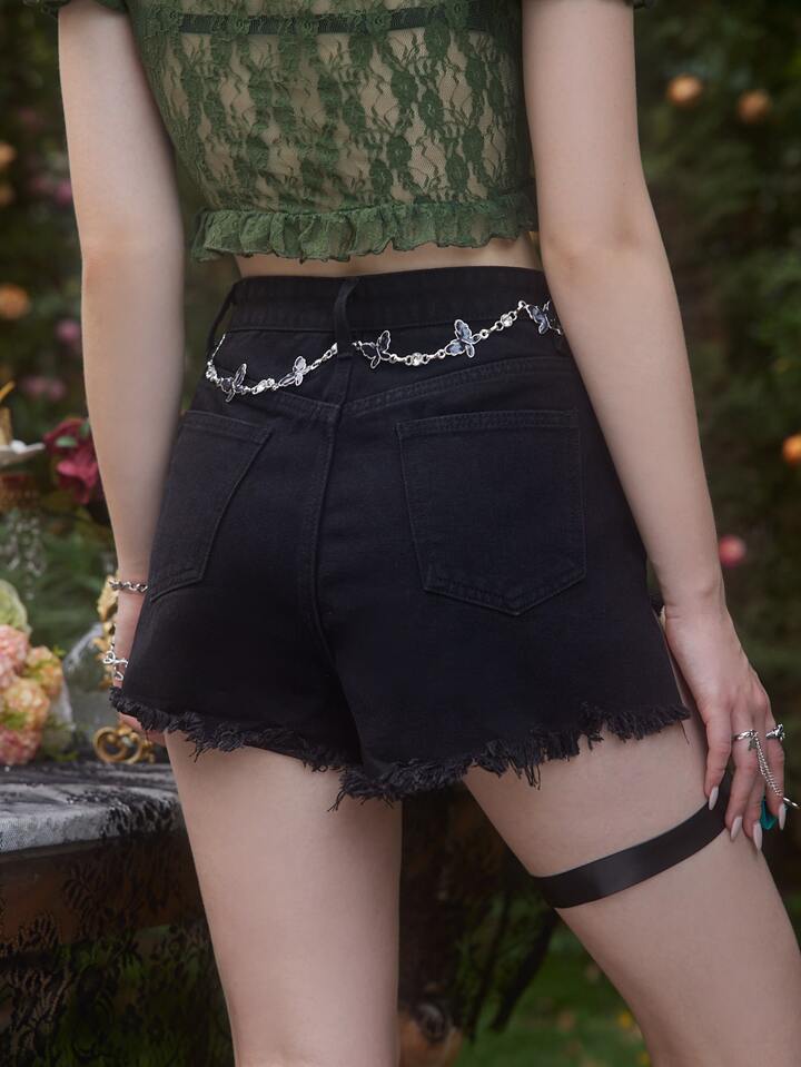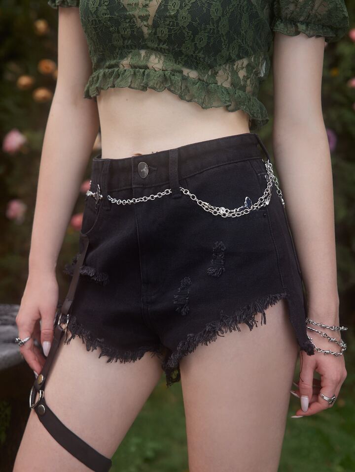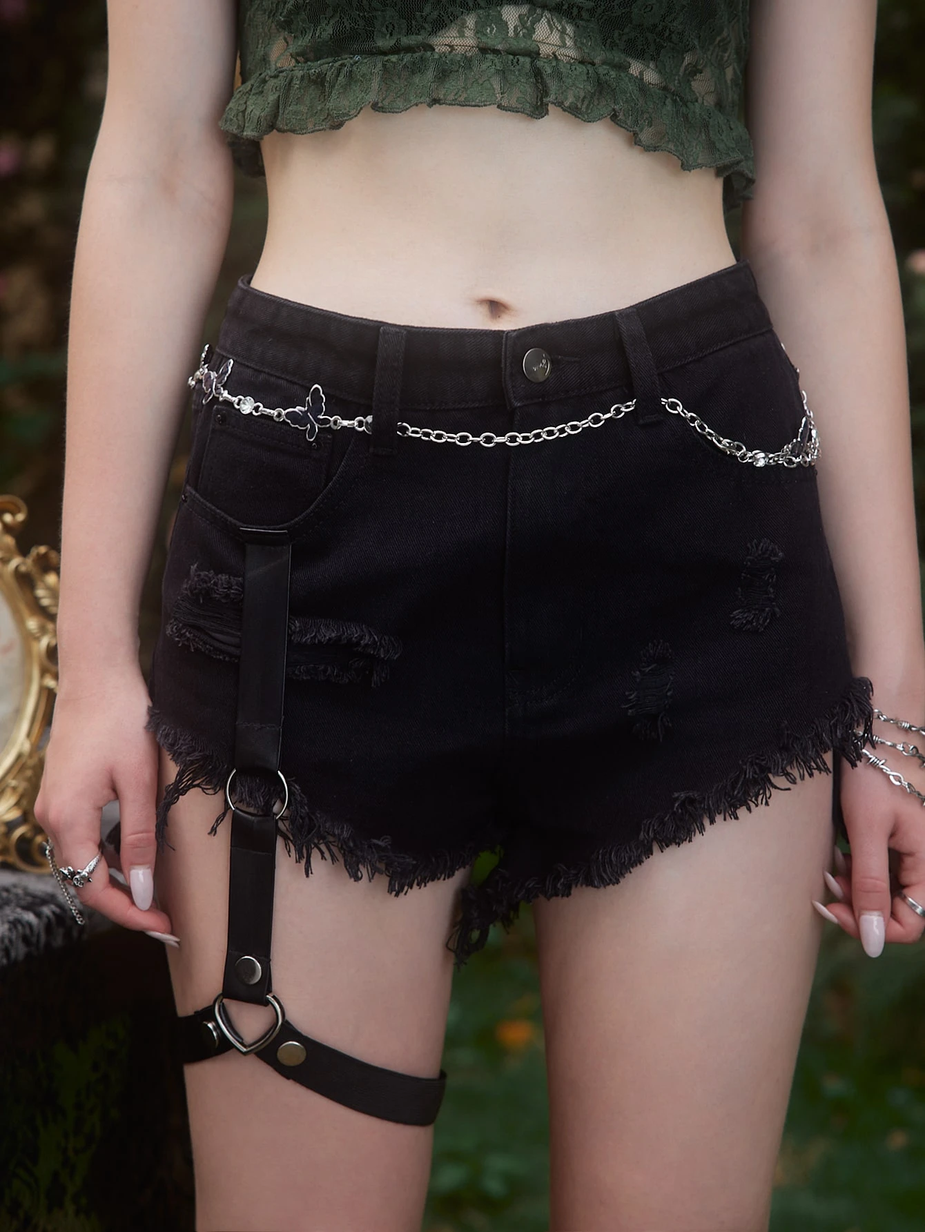 Fairycore Short en jean à ourlet effiloché jarretière sans chaîne