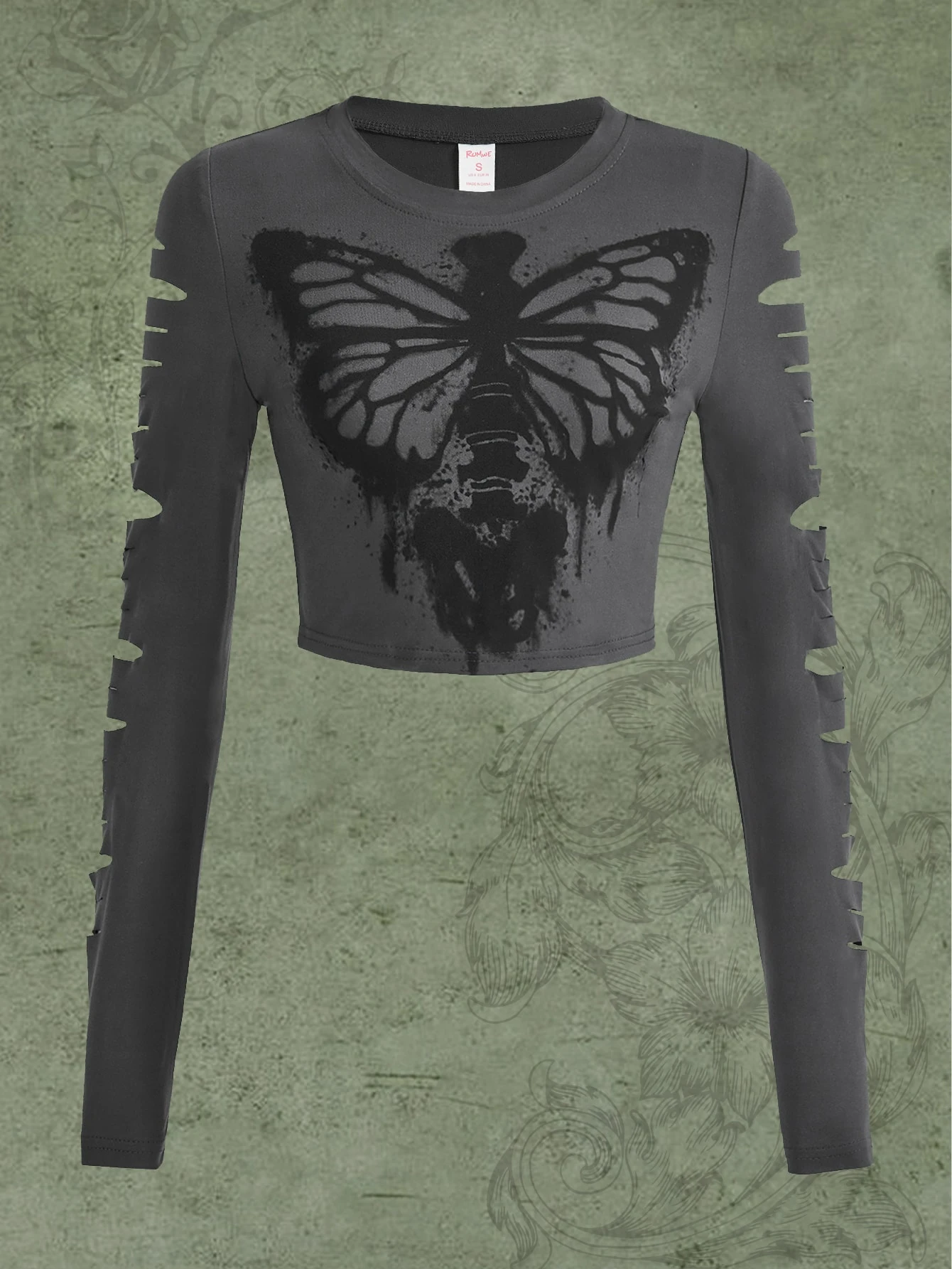 Fairycore T-shirts pour femmes Découpe Casual Papillon