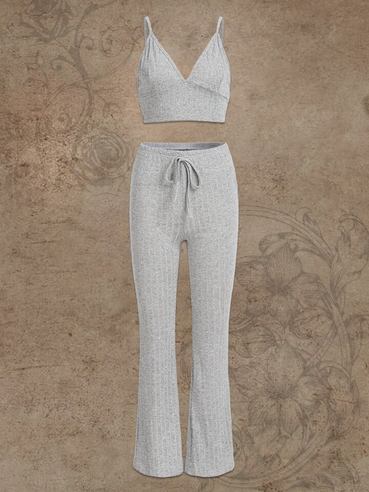 Fairycore Unicolore Top À Fines Brides & À Nœud Pantalon Évasé Ensemble De Pyjama