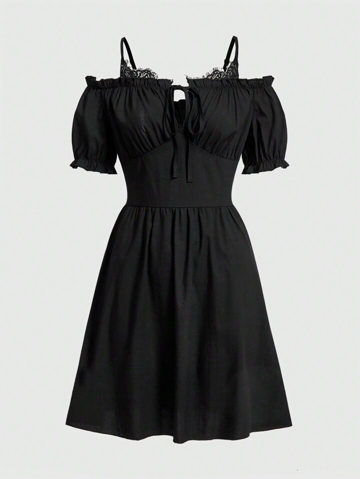 Fairycore Robe Unicolore À Plis À Épaules Dénudées