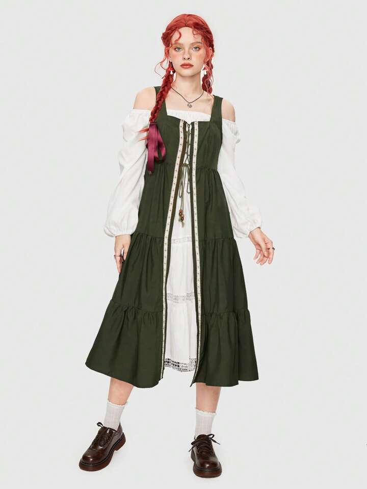 Fairycore Robe Fendu À Lacets À Volants (Sans Blouse)