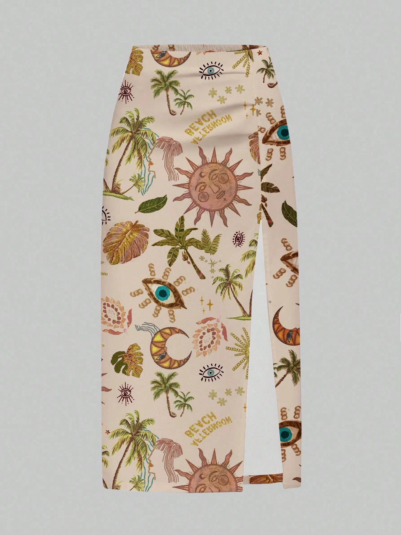 Fairycore Jupe fendue sexy et moulante à imprimé palmier pour vacances à la plage, convenant pour sortir