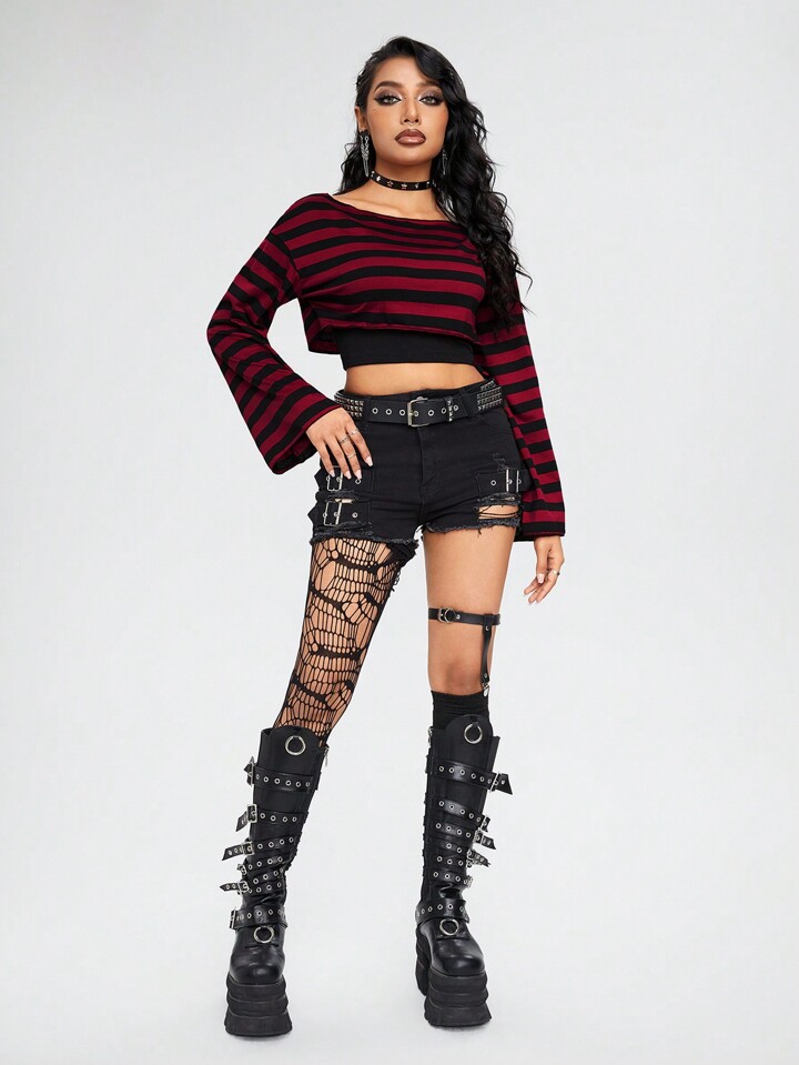 Fairycore T-Shirt Court À Rayures