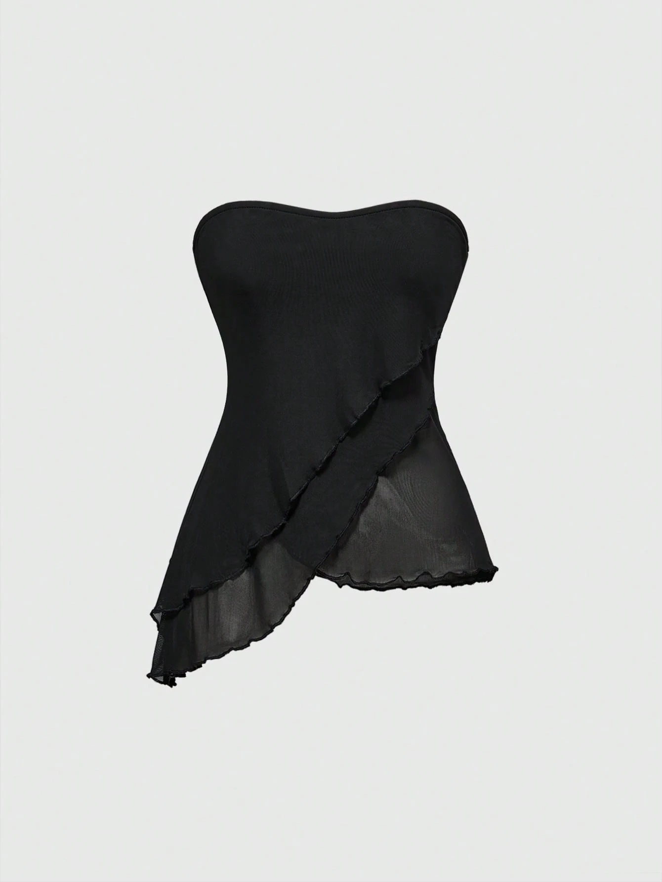 Fairycore Top tube sans bretelles femme style vacances d'été, couleur unie, patchwork en maille asymétrique