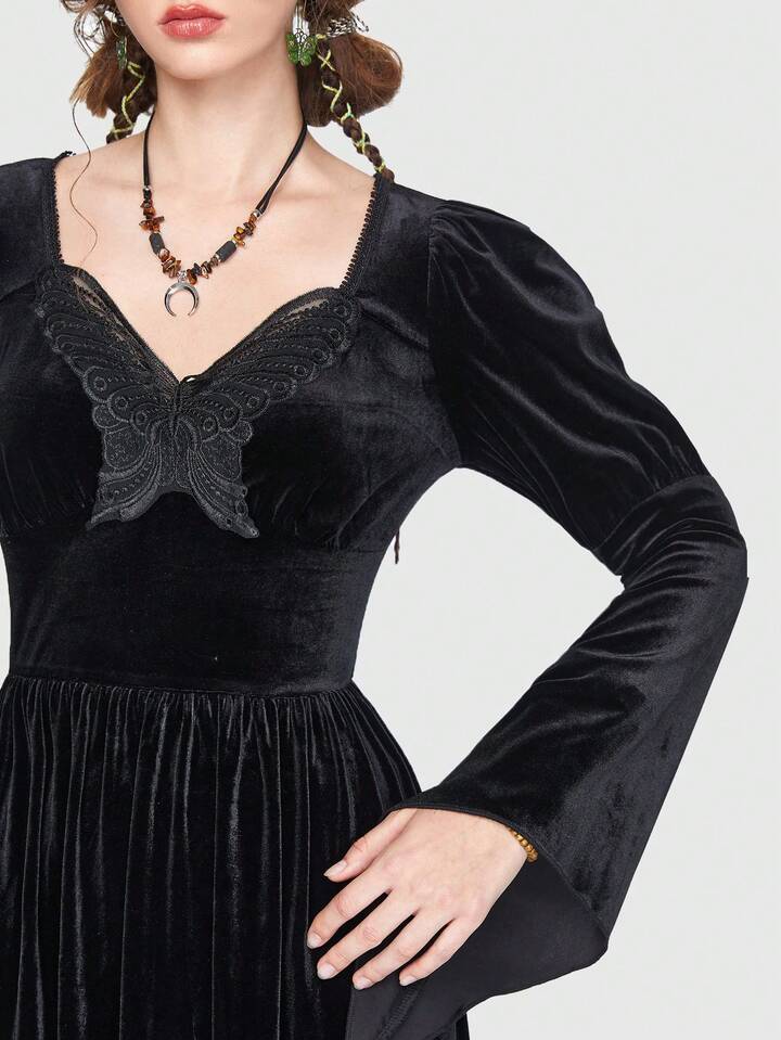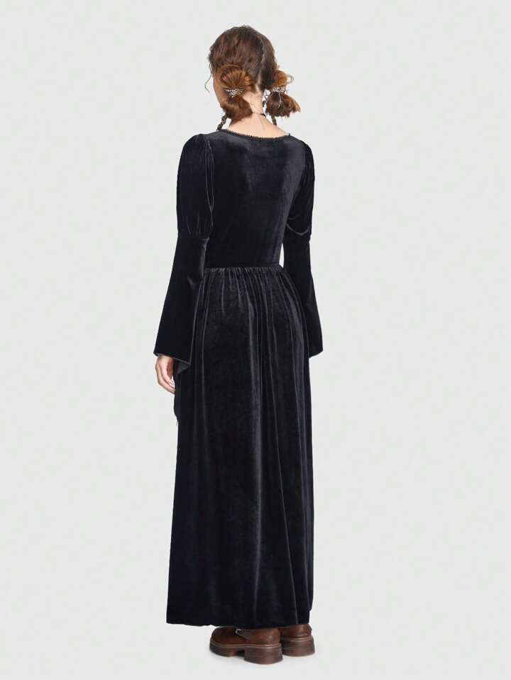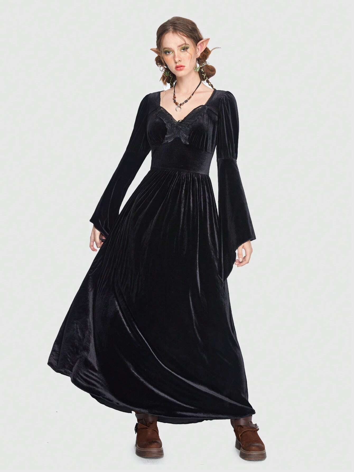 Fairycore Robe À Encolure De Cœur À Manche Évasée En Velours