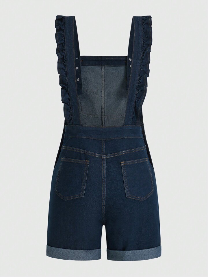 Fairycore Salopette En Jean Court Pour Femme Avec Broderie D'abeille Et De Plante, Ourlet À Volants