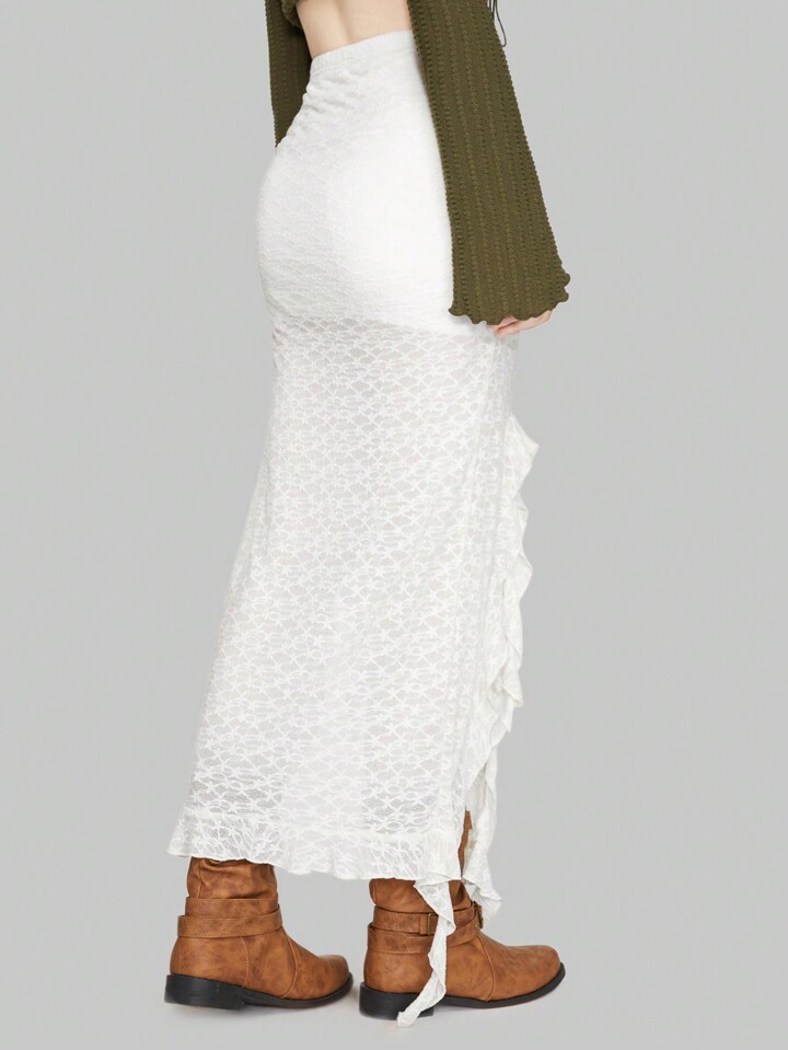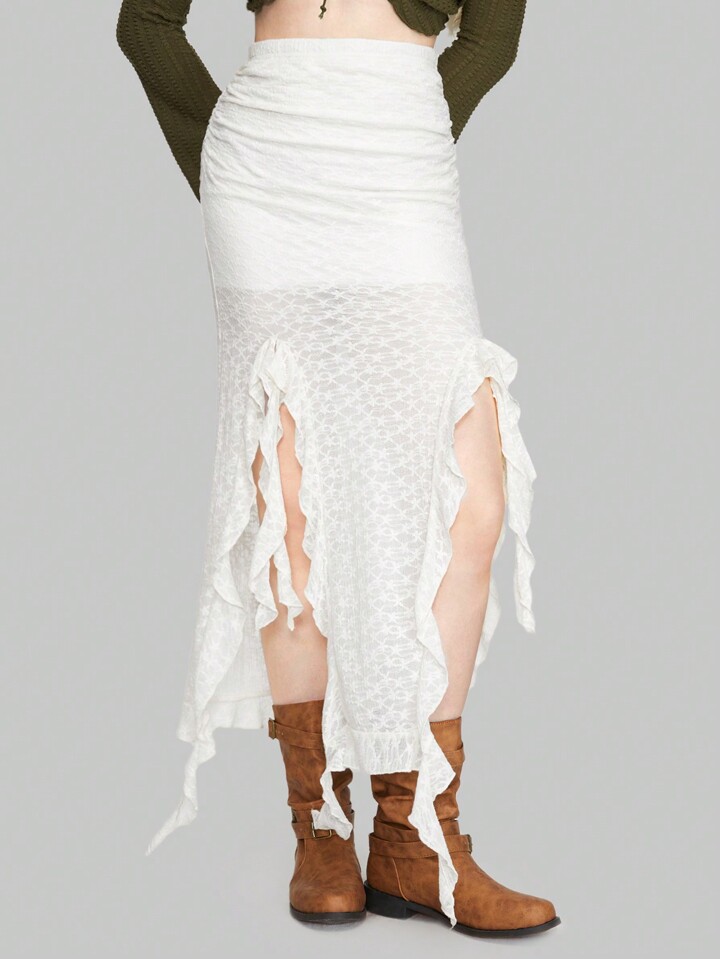 Fairycore Jupe Plissée À Ourlet Asymétrique À Fente Haute Pour Femmes Avec Bordure À Volants
