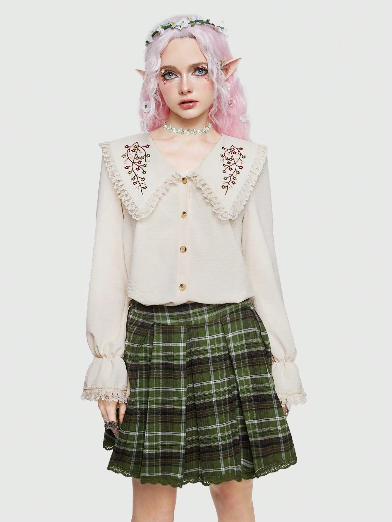 Fairycore Chemise À Manches Évasées Et Brodées De Plantes Pour Femme