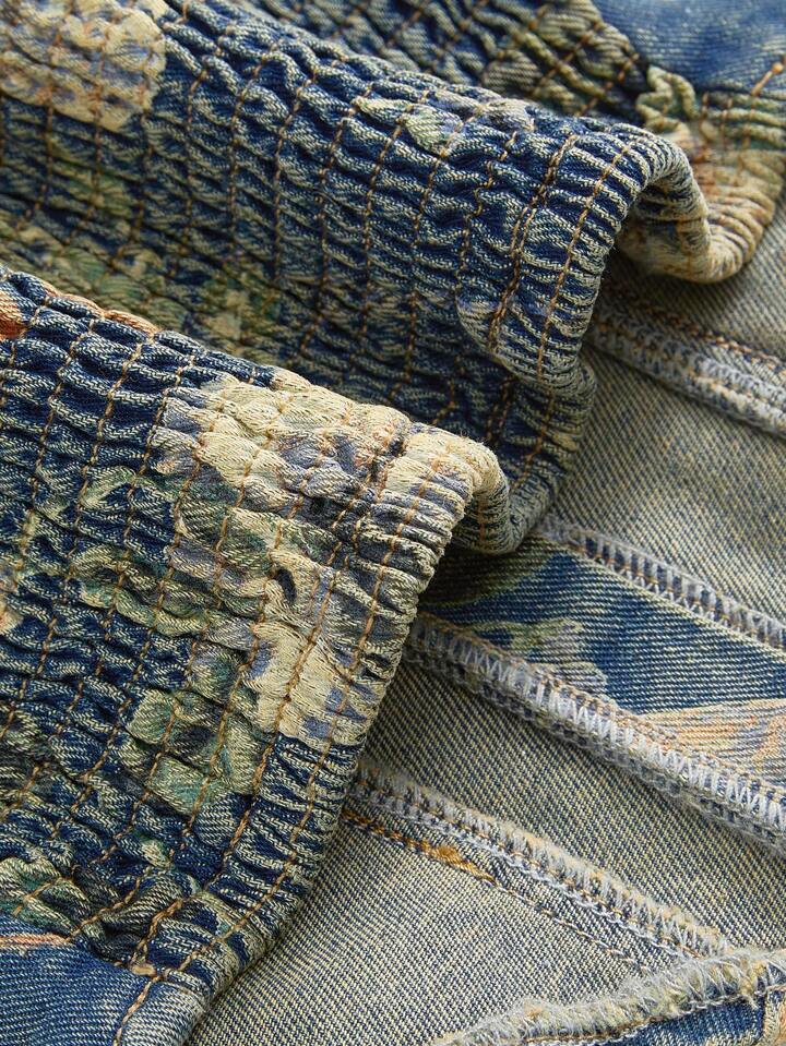 Fairycore Veste en jean délavé déchiré femme avec imprimé floral sexy Streetwear Y2K court