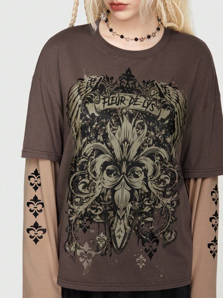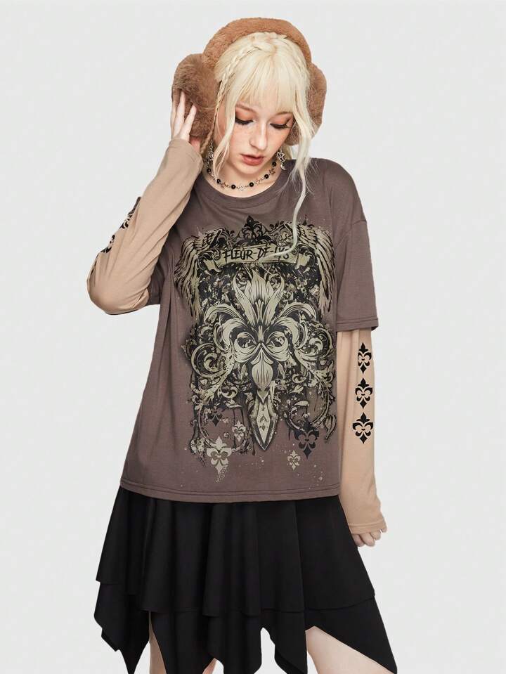 Fairycore T-shirt 2 En 1 Pour Femmes Avec Motif De Lettre Et D'aile