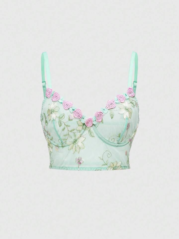 Fairycore Brassière à armatures avec broderie florale pour femmes