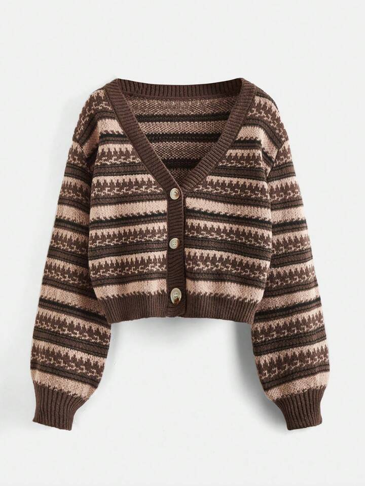 Fairycore Cardigan Femme À Motif Géométrique Avec Boutons