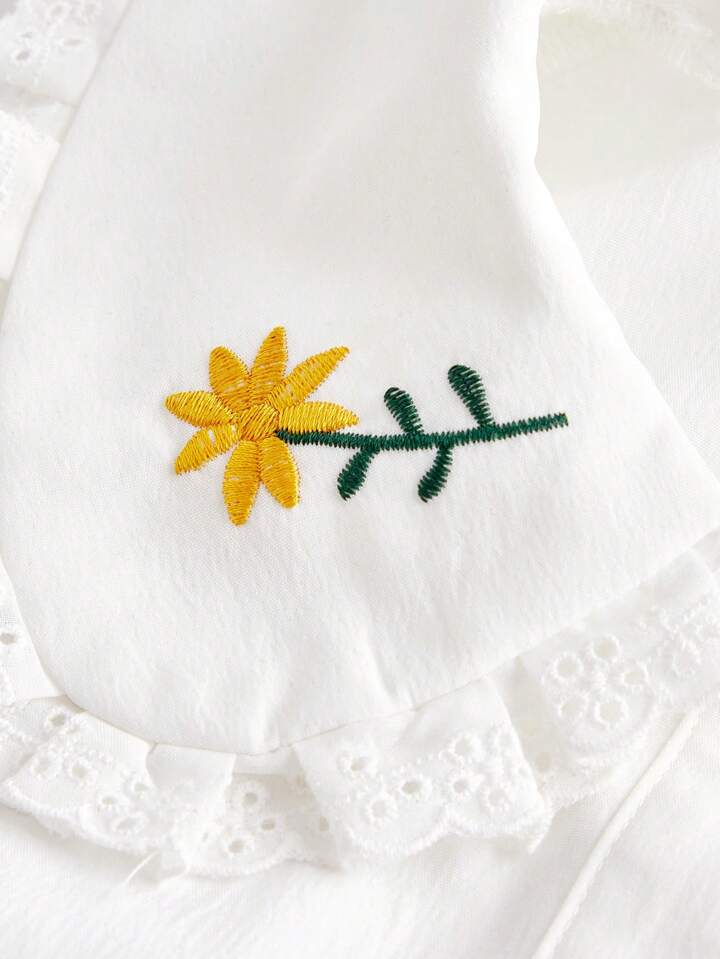Fairycore Chemisier À Manches Longues Avec Col Peter Pan Et Broderie Florale Pour Femme