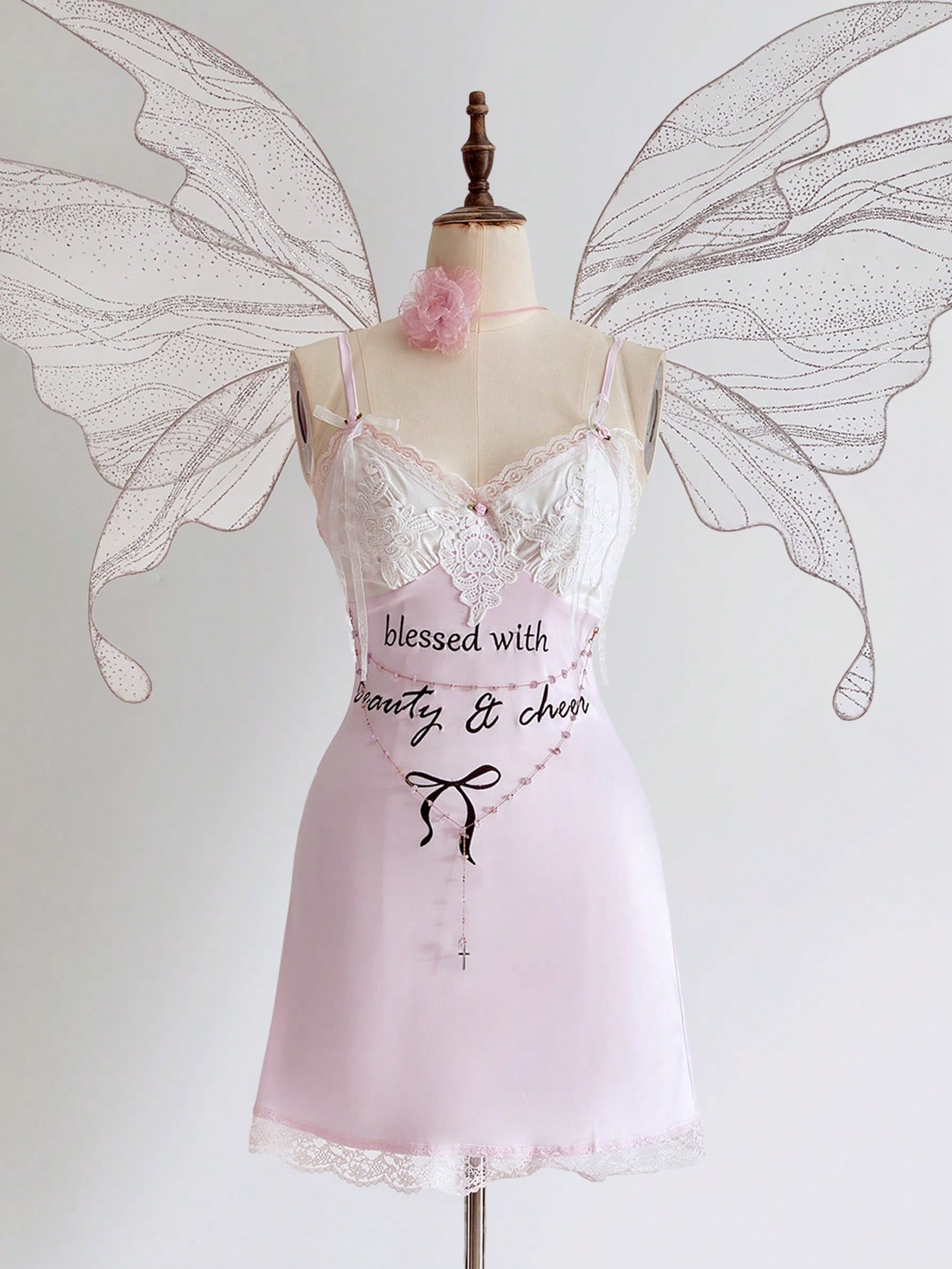 Fairycore Robe mini femme en satin et dentelle contrastée avec broderie papillon et chaîne