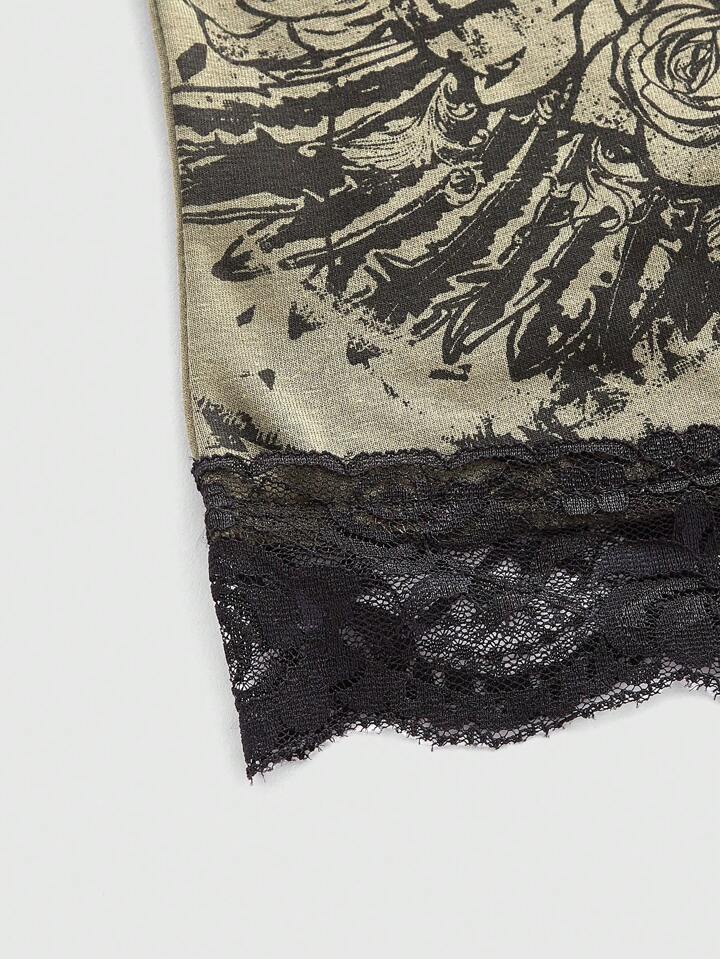 Fairycore Haut Caraco En Dentelle Imprimé Tête De Pour Femmes
