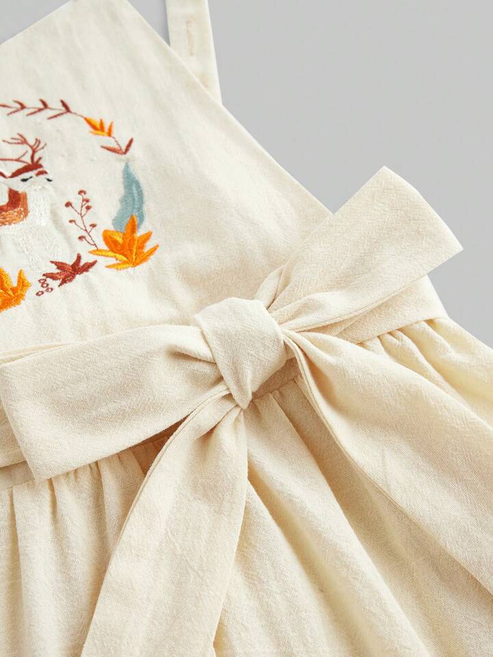 Fairycore Tablier de style campagnard avec broderie de cerf pour femmes, printemps-été